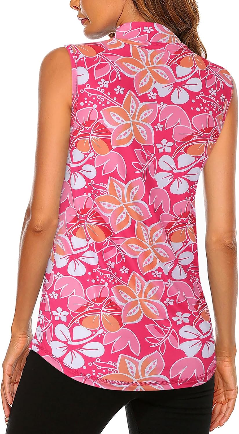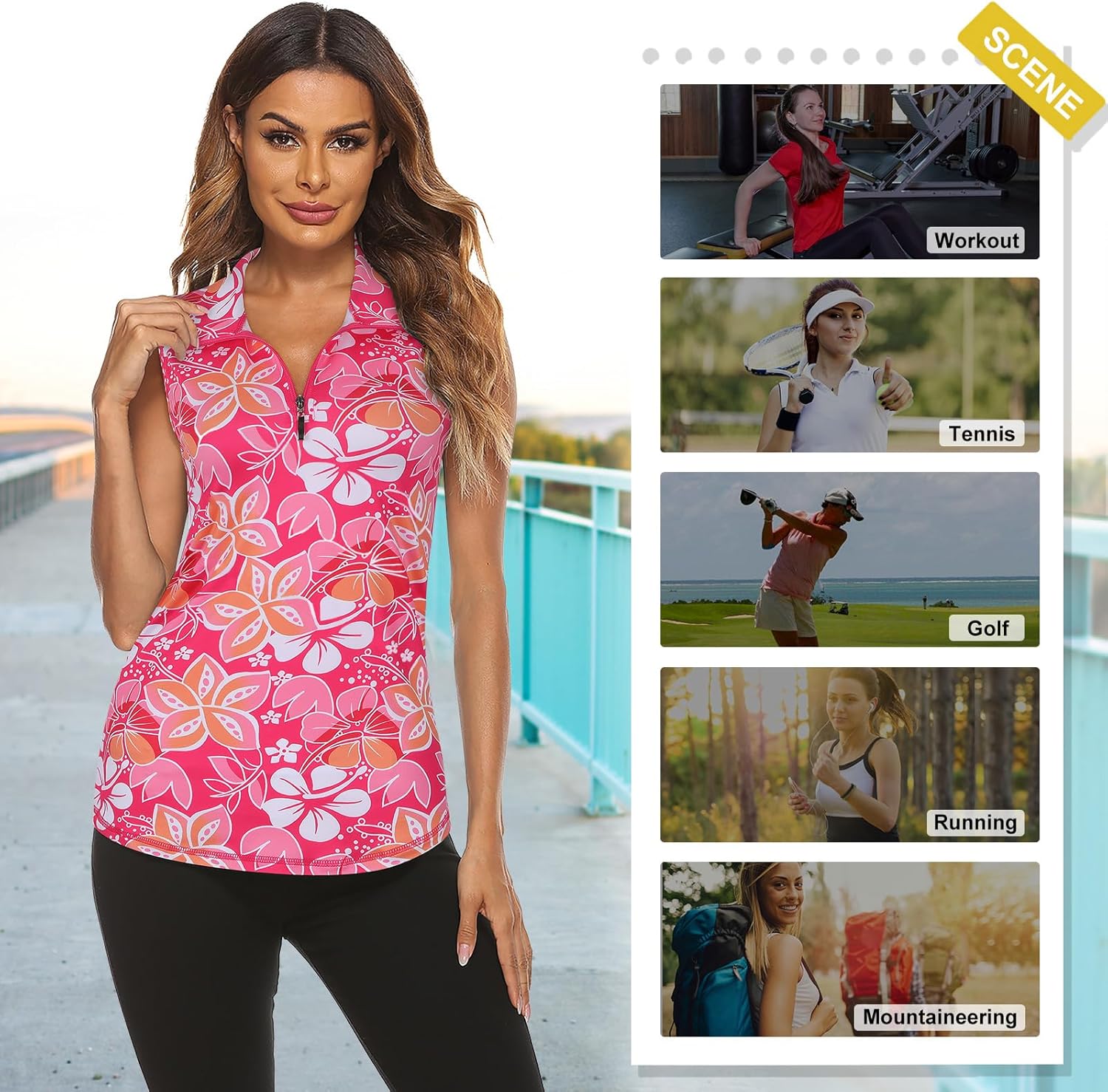 Koscacy Women's Sleeveless Golf Tennis Polo Shirts Zip Up Dry Fit Workout Tank Tops Athletic Shirt