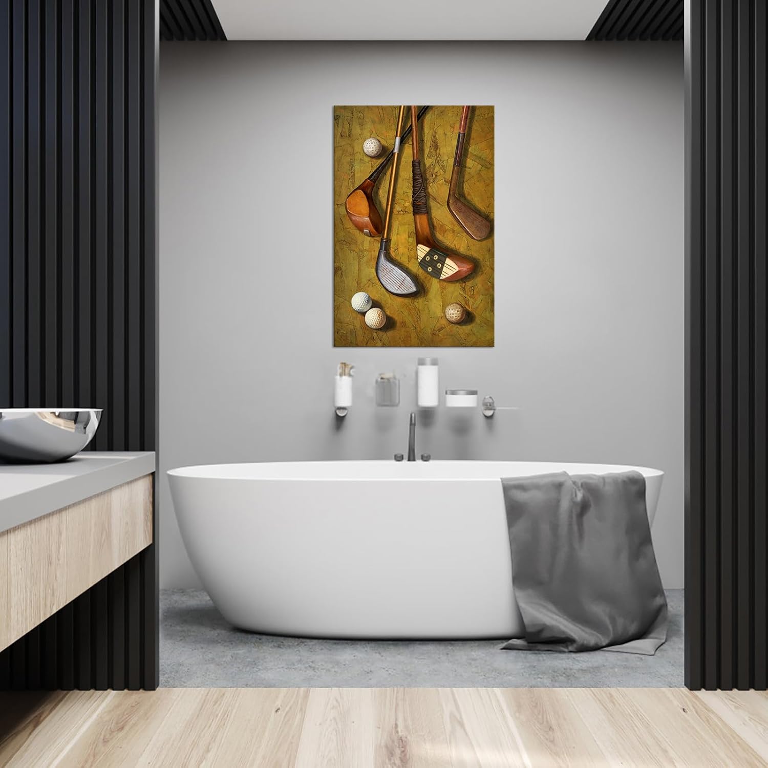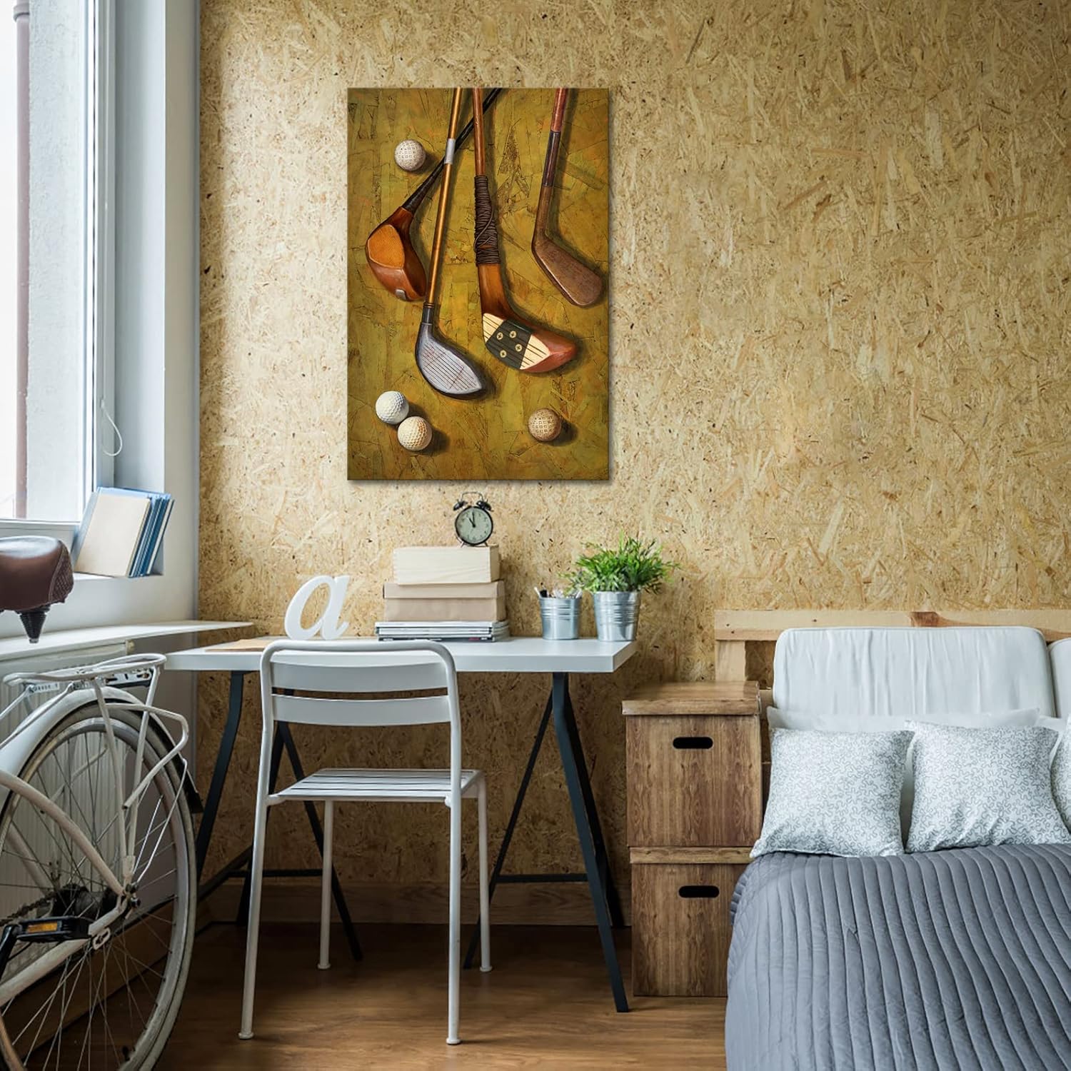 KLVOS Golf Pictures Wall Decor Vintage Sports Artwork Golf Ball Canvas Art Print Home Decor Great Gift for Bedroom Man Cave Office Gym Decoration Gallery Wrap Inner Frame 24x36inch