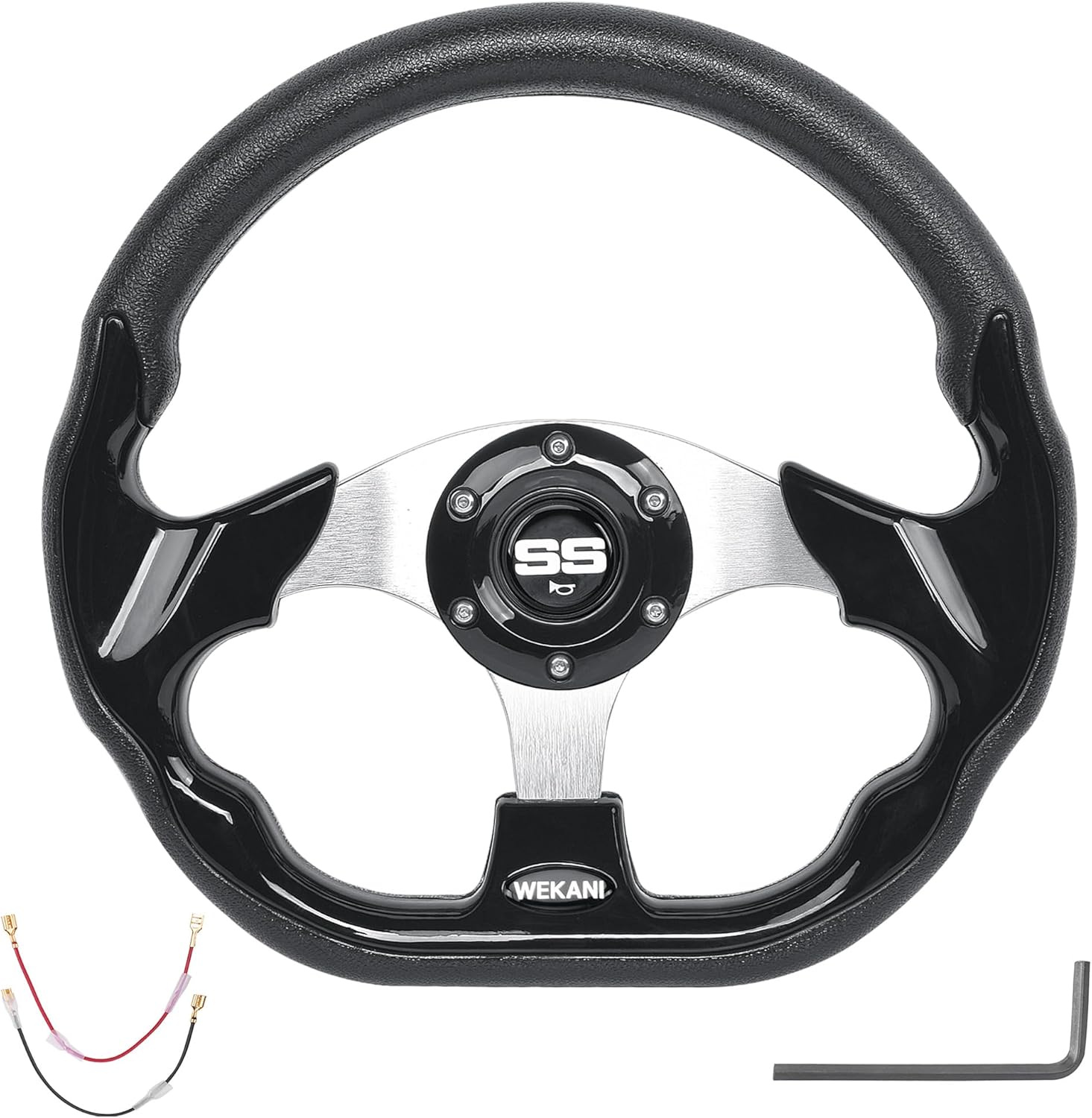 - 【Easy Installation】WEKANI Golf Cart Steering Wheel Kit contains 1 steering wheel, 1 wrench and 6 screws, and comes with written installation instructions and detailed steps, it can be installed easily and quickly in minutes, and enjoy a brand new one in a short time control.