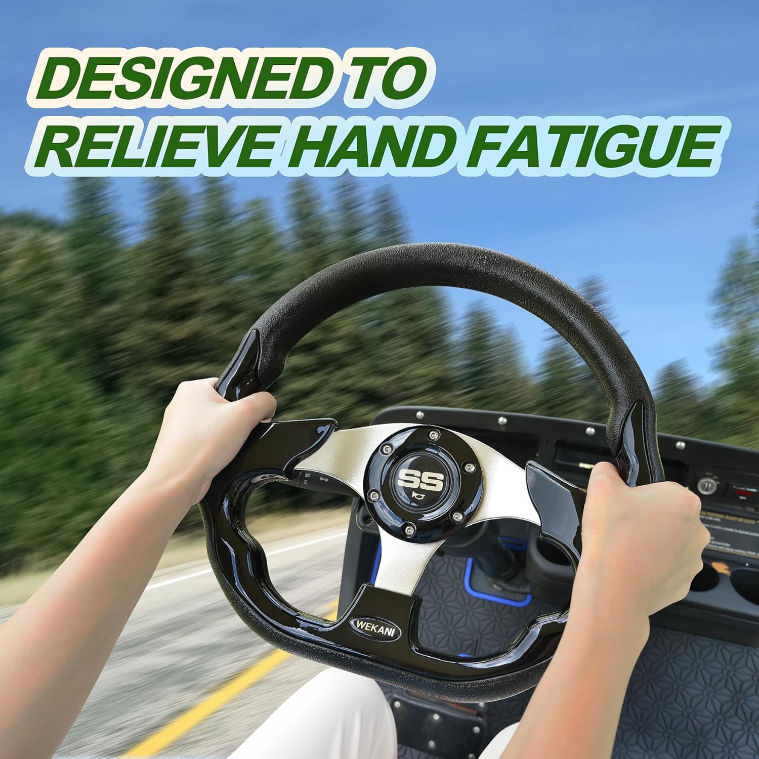 D Golf Cart 12.5 Inch Steering Wheel,For Club Car EZGO Yamaha Golf Cart,with Car Horn Button,Cool racing steering wheel black