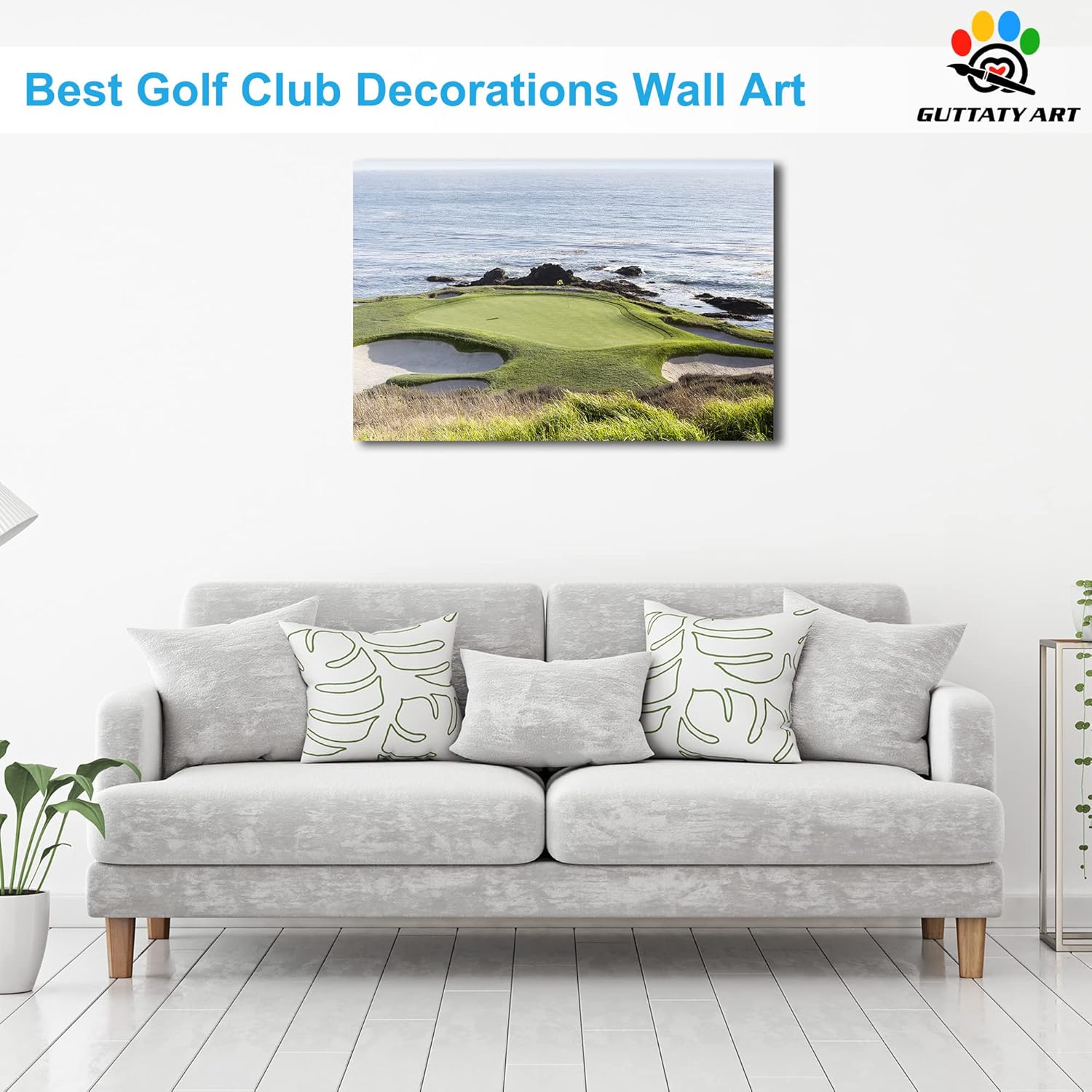 Pebble Beach Golf Course Canvas Wall Art, Modern Pebble Golf Links Picture for Living Room Wall Decor, Golf Poster Prints for Gym Home Decor, Framed Artwork for Office Bathroom Decor 24x36 Inches