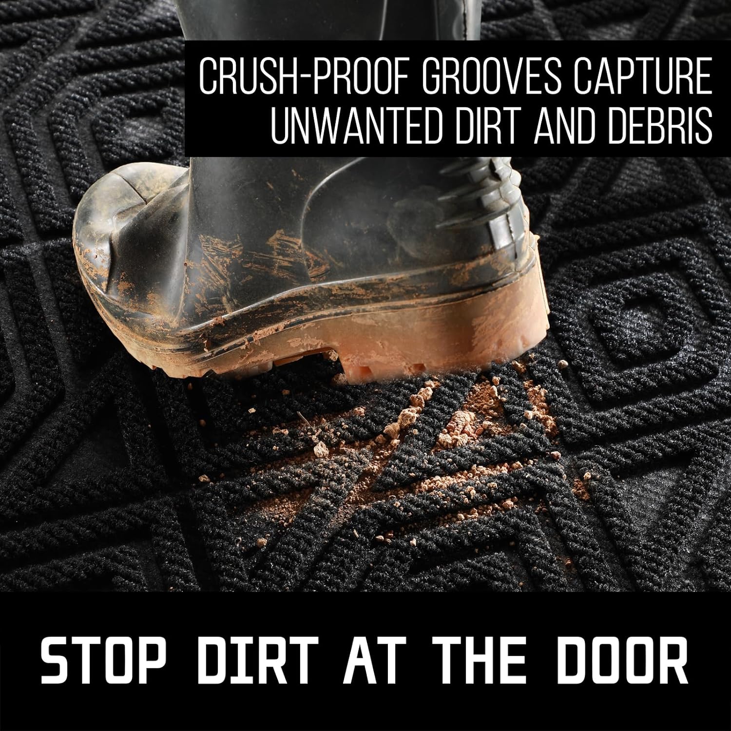 - [CAPTURE DIRT AND MOISTURE] Yimobra front door entryway mat outdoor with unique pattern design, forming a detention dam extending in all directions, helping to capture dirt, dust, gravel, mud, sand, grass or other messy debris and prevent them from entering Indoor; The surface of floor mat beautifully woven polyester fabric absorbs moisture, and the sturdy oblique rubber edge will not accumulate water in rainy and snowy days, keeping your home dry and clean