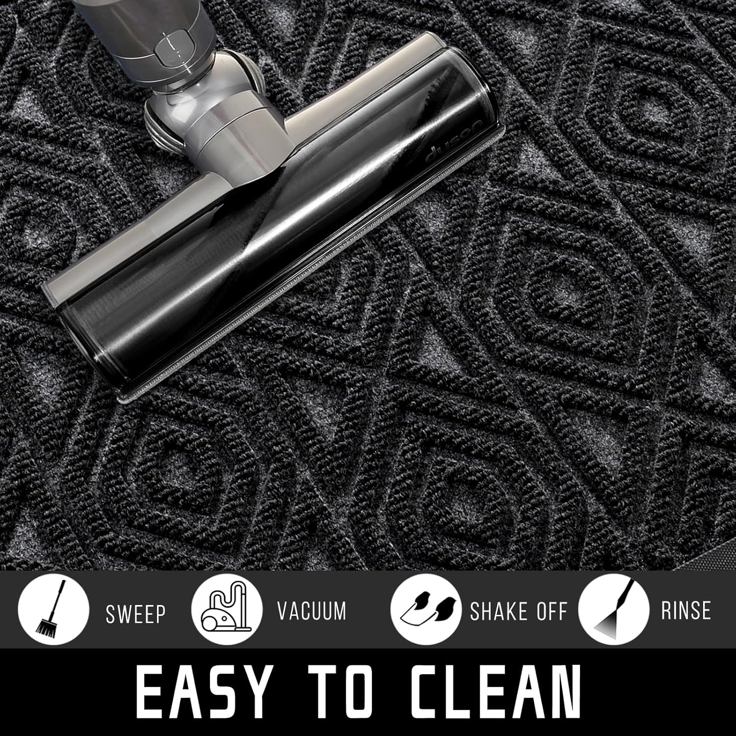 - [EASY TO CLEAN] Yimobra outdoor mat, Just use a vacuum cleaner, or sweep with a broom, or tap the backing and shake the doormat. For more in-depth cleaning, use a garden hose to rinse the floor mat, then hang it in a ventilated place to air dry it or use a dryer
