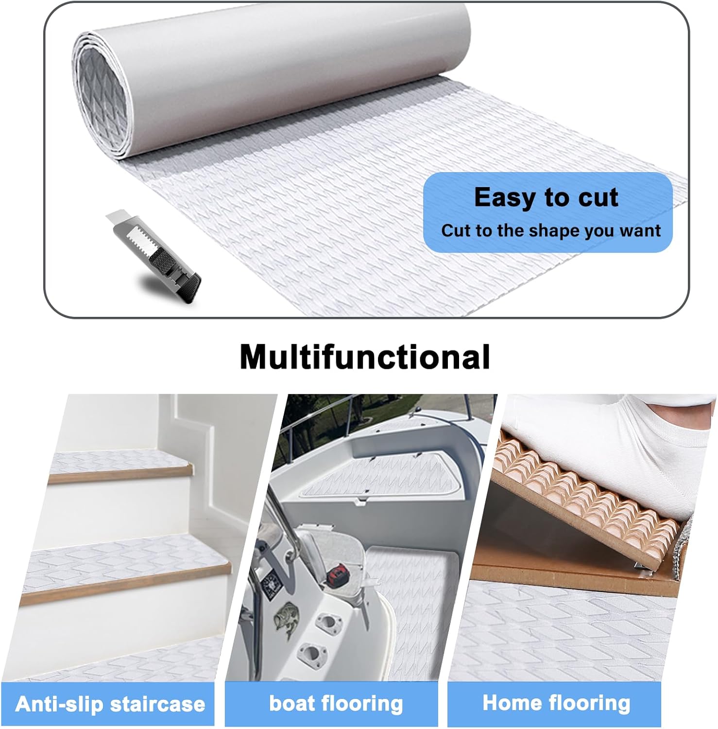 - Wide Application - This non-slip traction pad can be use for surfboard, SUP paddle board, boat decking, kayak, skimboard, rv flooring, swimming pool steps, stair steps, yacht, skateboard, canoe, garden flooring, etc. UNIVERSAL DECK GRIP PAD