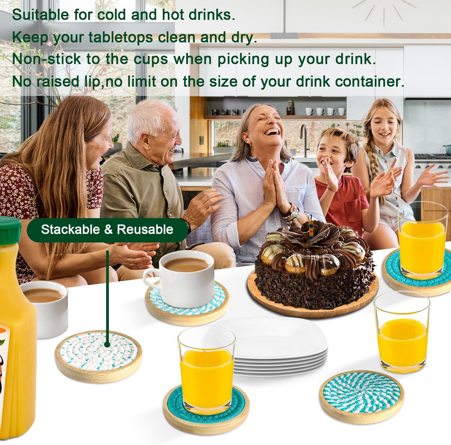 Bamboo Coasters for Drinks, Absorbent Coaster Sets of 5, Woven Drink Coasters for Coffee Table, Housewarming Gift for Farmhouse Home Decor,4 inches (Lake Blue Series)