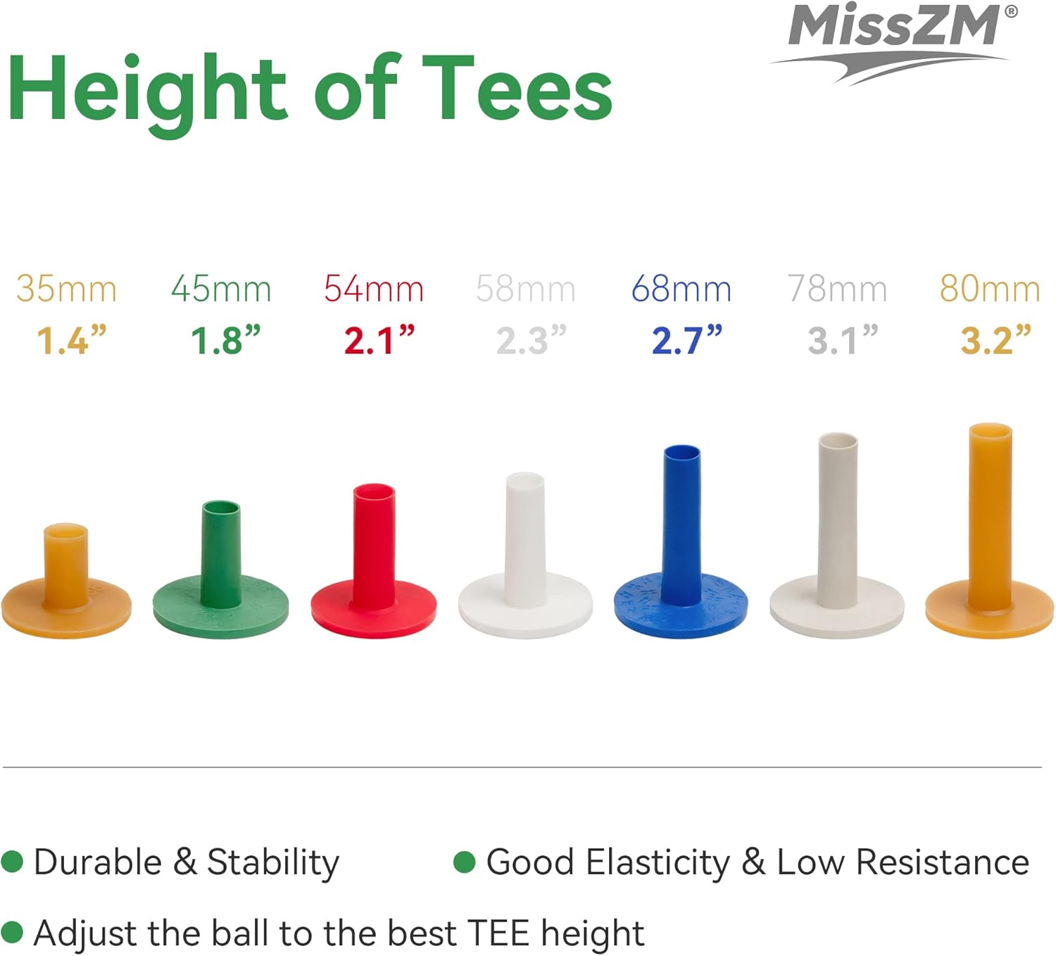 - With heights ranging from 35mm to 78mm, our tees are perfect for golfers of all levels and abilities.