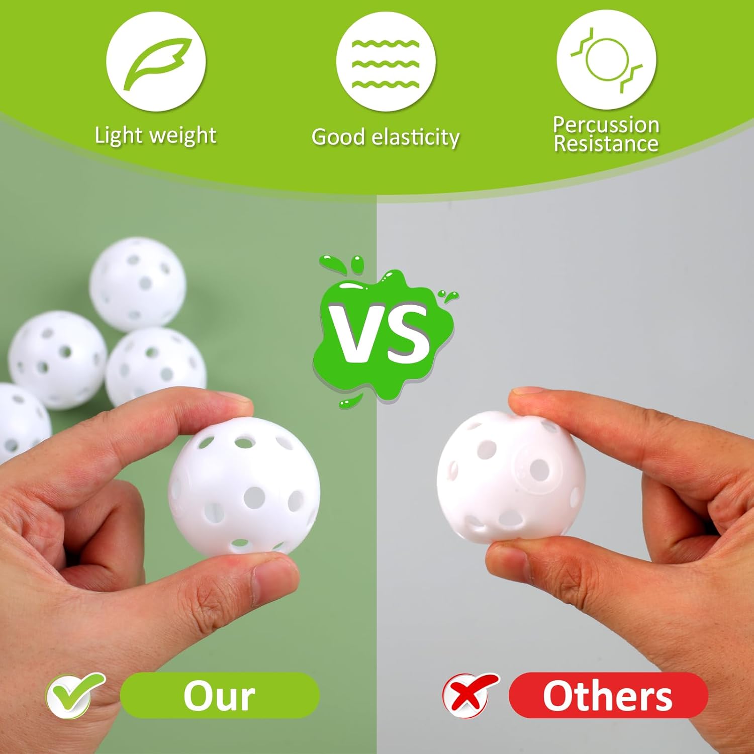 - 【24 High-quality golf balls】 A pack of 24 plastic golf balls is made from a durable, non-toxic polyurethane plastic that makes practice golf balls less likely to crack or dent, making them last longer than traditional plastic practice golf balls. Plastic golf balls are an excellent choice for beginners and can help you improve your golf skills effectively.