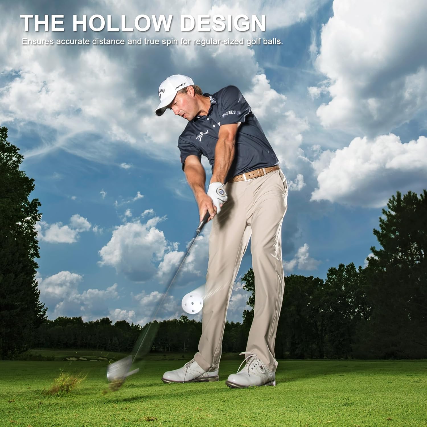 - 【Symmetrical hollow design】 These practice golf balls, are about 42mm in diameter, with each weight is 4.2g, round ball surface has a symmetrical 26-round hole design, which can ensure the golf practice balls are at high speed running constant speed, and the distance within the specified range. Friendly to golfers with limited space and time, perfect for kids and beginner training golf.