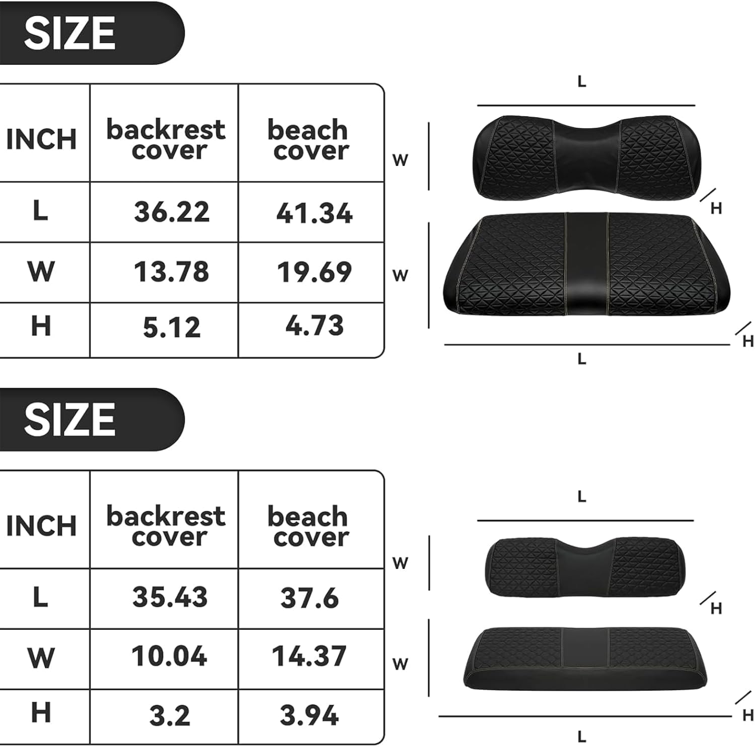 - ăApplicable VehiclesăPackage included 4pcs seat covers. Front seat covers are suitable for golf cart Yamaha g29 2007-2016/Yamaha drive 2 2017+ Ordinary front beach and backrest seat covers, not suitable for other shapes or OEM wide beach seat cushions and other wider backreat seat cushion, not for modified seat. Rear seat covers are only suitable for aftermarket B shaped rear seat kit Please check the size chart before ordering. There will be 1 inch differences because of manual measure