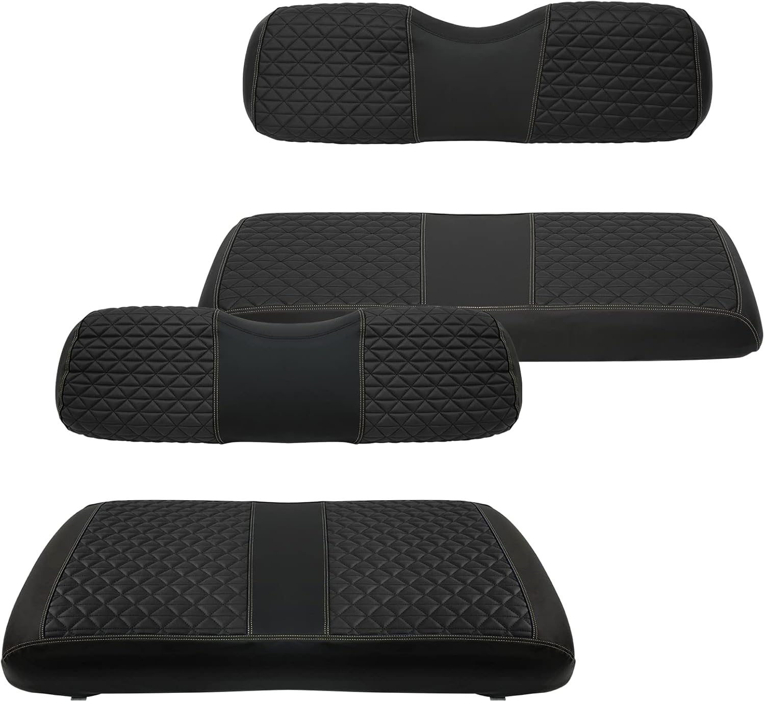 - ăStylish Design and Comfortable MaterialăXUANYUDG0769 golf cart front and rear seat covers feature diamond stripes,high quality durable vinyl leather made and foam padding fillers added. Our golf cart seat covers are combined with durability and fashion that brings your golf riding ultimate enjoyment and comfortable.