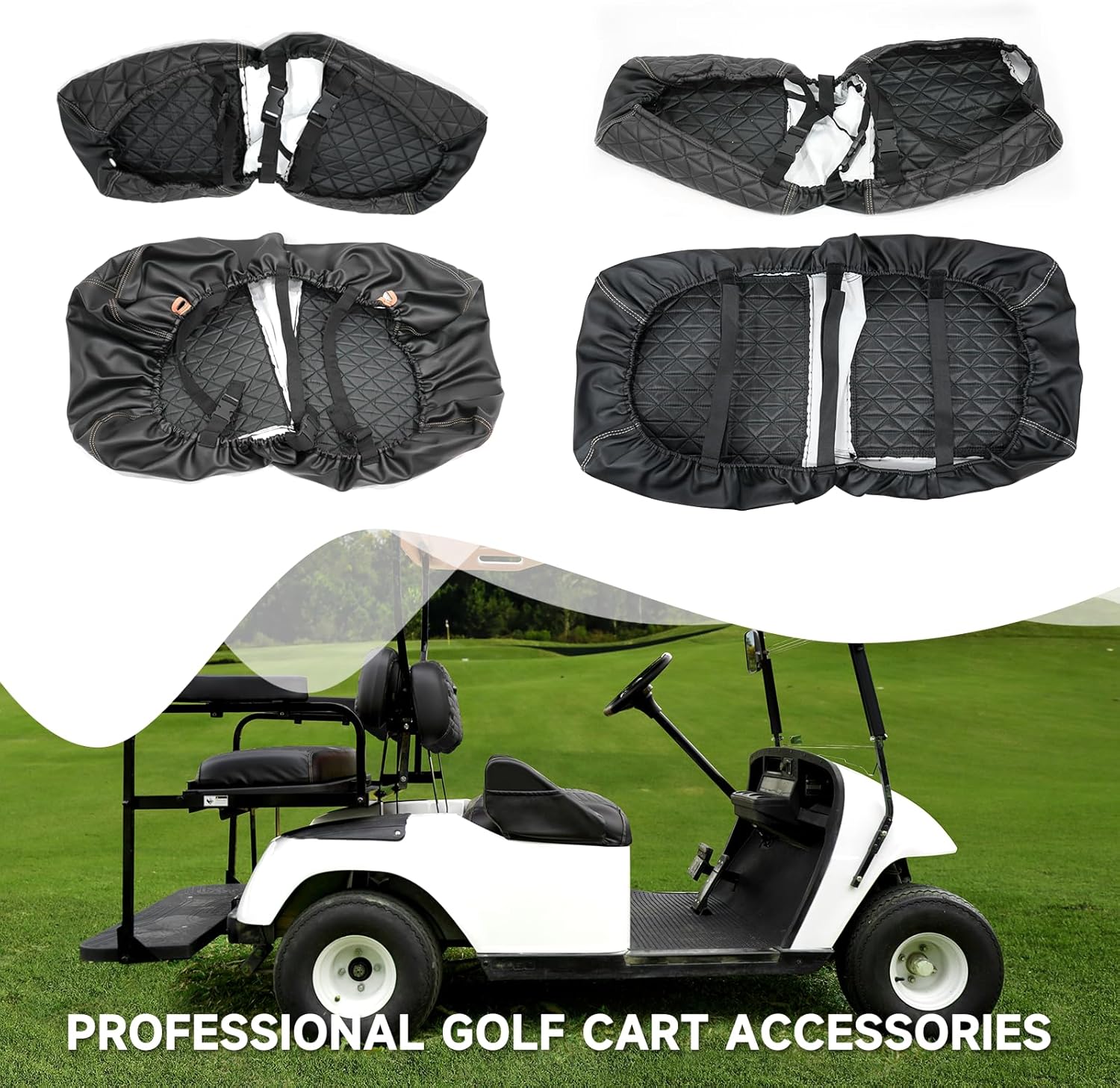 XUANYUDG0769 Golf Cart Front and Rear Seat Covers for EZGO TXT/RXV Club Car DS/Precedent Yamaha G29, Vinyl Leather Made/Adjustable Straps and Retractable Buckle/No Stapler Required,4PCS