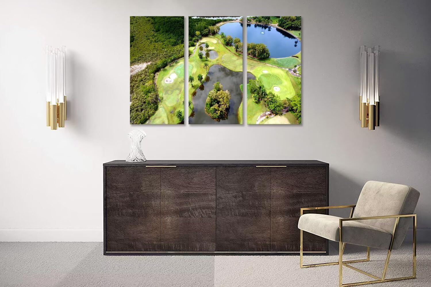 chenchenArt Golf Course Wall Art for Living Room Bedroom Bathroom Home Decorations Lake and Golf Course Pictures Posters Canvas Prints Modern Artwork for Office Framed Ready to Hang(12''W x 24''H x3)