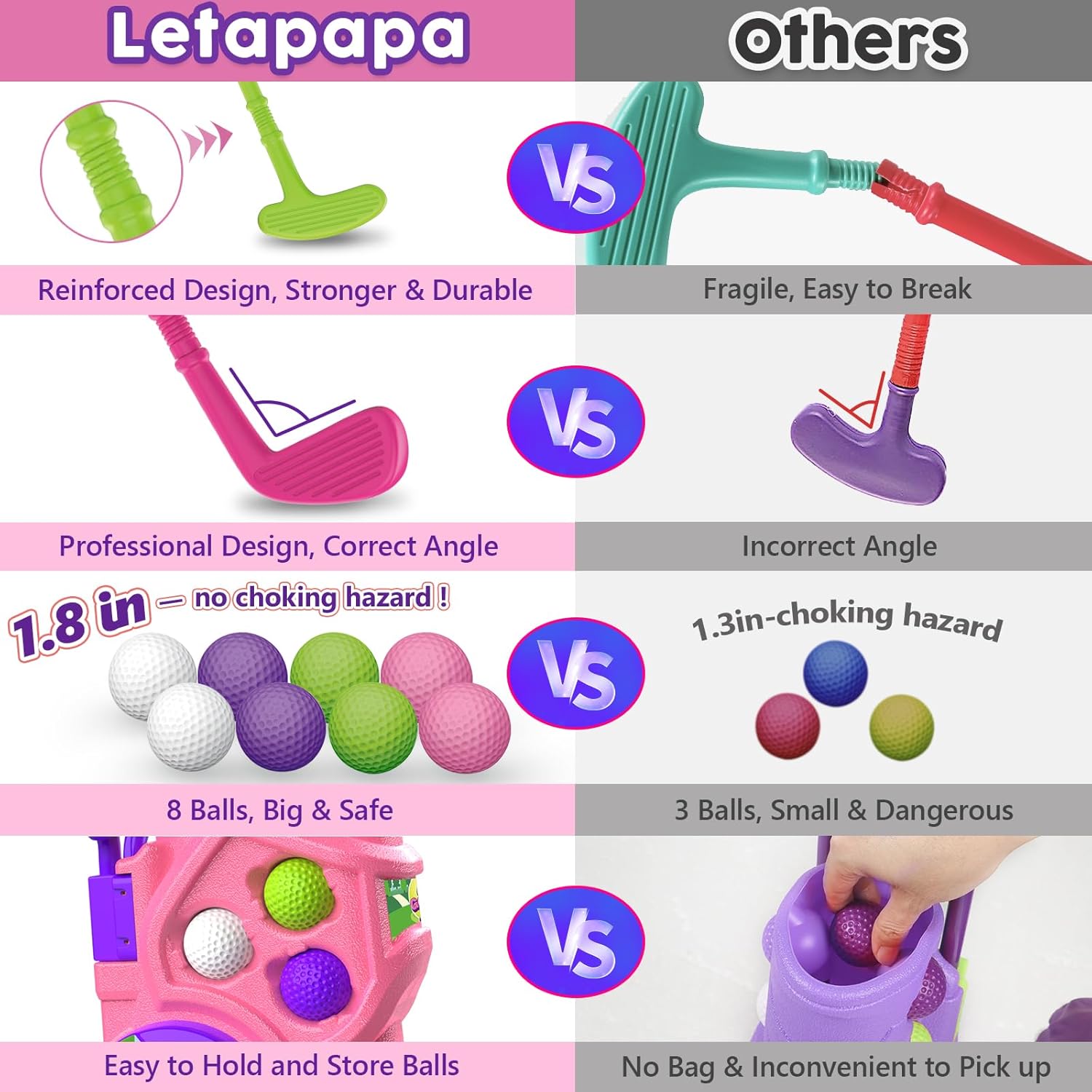 - IDEAL GIFT FOR GIRLS:Letapapa baby golf set is the perfect indoor/outdoor sports gift for girls 3+ in birthday, Children's Day, Christmas etc. We believe in providing excellent customer service and ensuring a positive shopping experience for all our customers. If you have any questions regarding our animal toys, please feel free to contact us. We will try our best to serve you anytime.