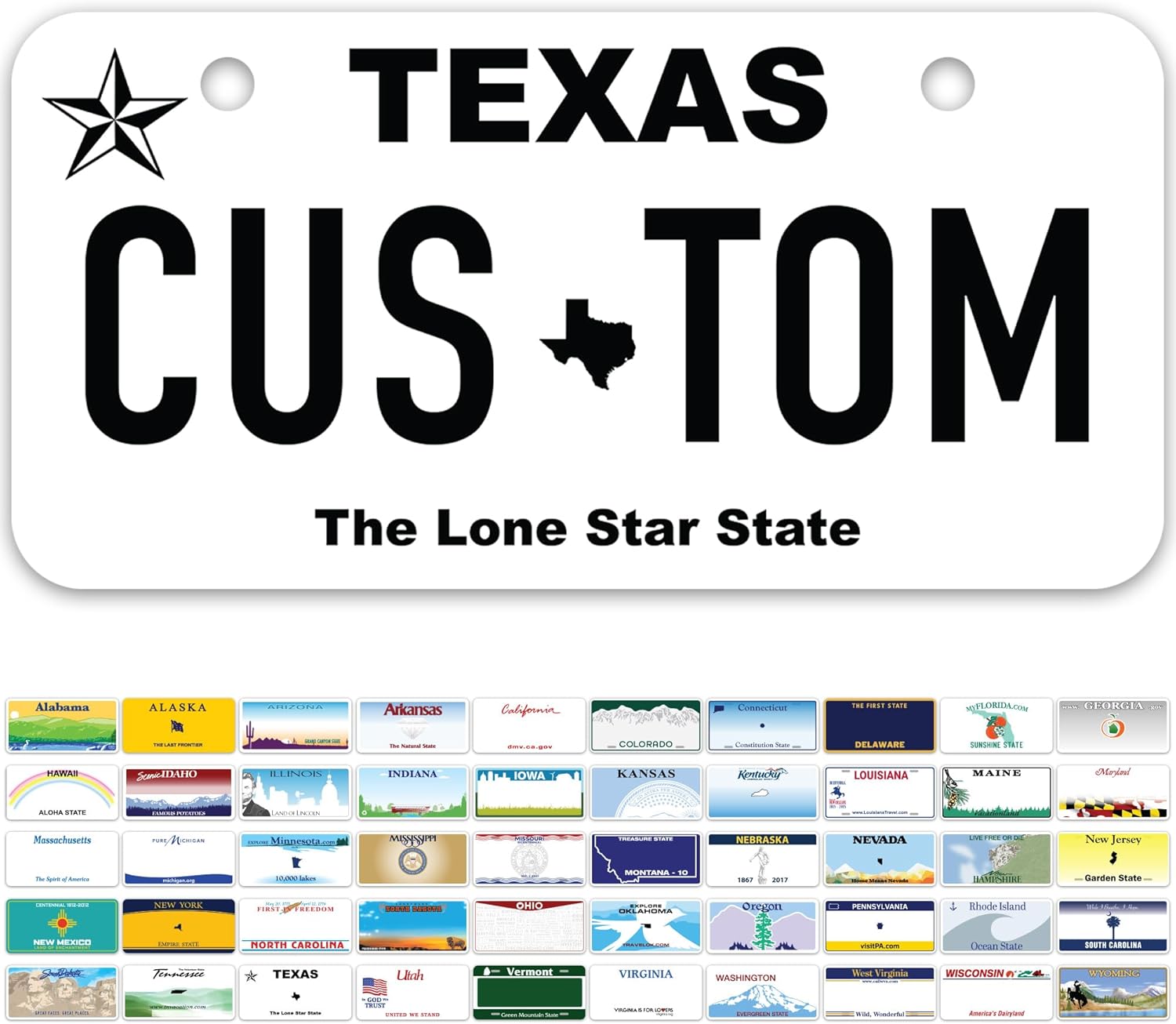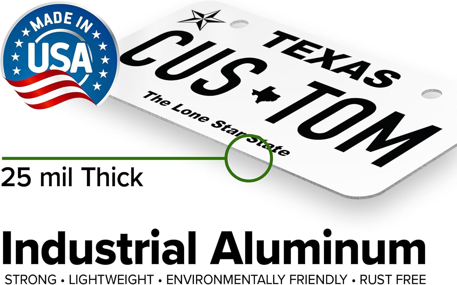 Mini License Plates, Personalized License Plates, Custom for Car, Bikes, ATV, Kids Car, Golf Cart, Jeep, 2x4 Inch, Rust-Free Fade Resistant Aluminum, USA Made by My Sign Center (Texas)