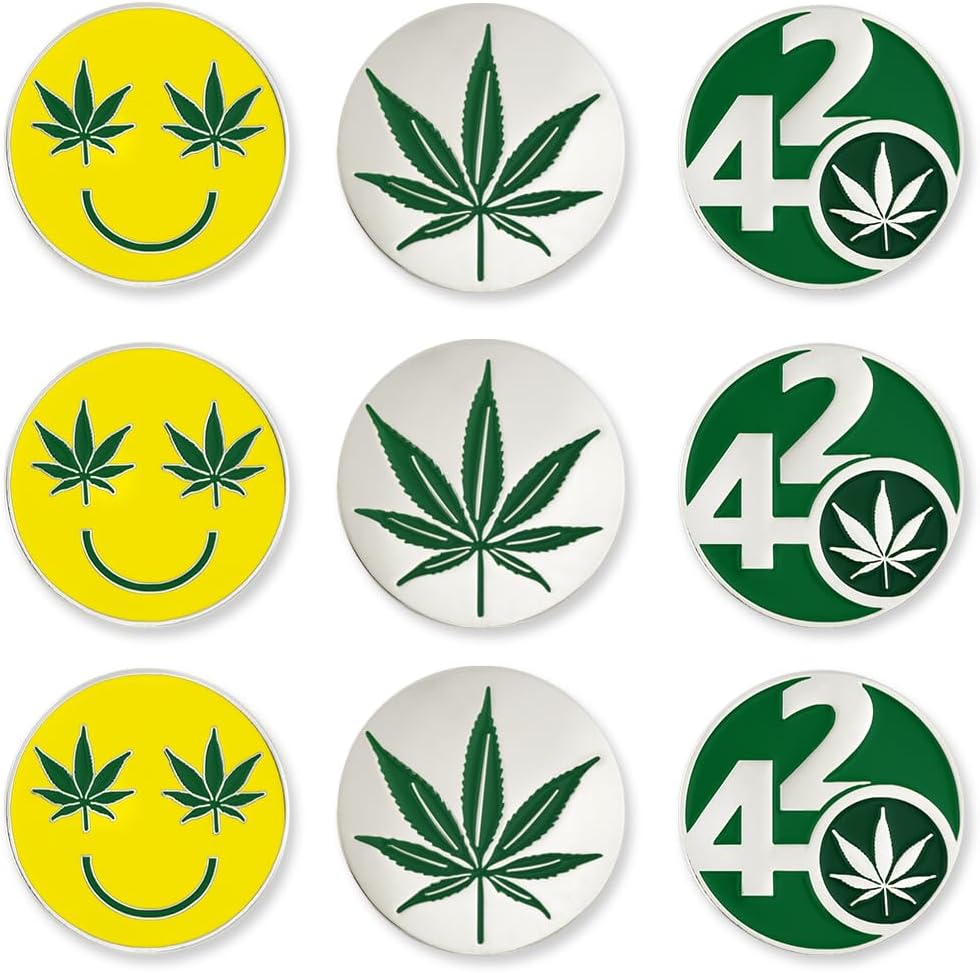 - GOLF MARIJUANA MARKER: Mark your spot on the golf green and demonstrate your love for the game by adding this cool Golf Marijuana Ball Marker 9-Pack to your collection, each marker is nickel plated and features fun designs. These golf markers make perfect golf gifts for any golf enthusiast