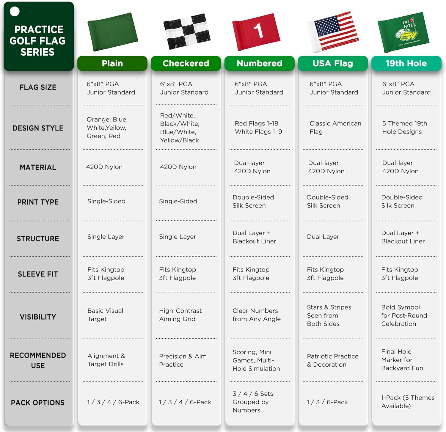 - PGA Junior Standard Size: Specifically designed at 6" H x 8" L to fit 3-foot flagpoles, aligning perfectly with PGA junior flag standards.