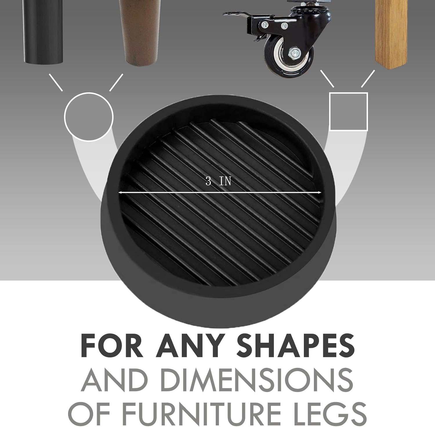 3X3 Round Rubber Caster Cups, Non Slip Furniture Pads, Anti-Slip Gripper, Anti Skid Furniture Feet, Anti Slide Floor Protector for Bed Couch Table Chair Stoppers - Black, 4 Pack