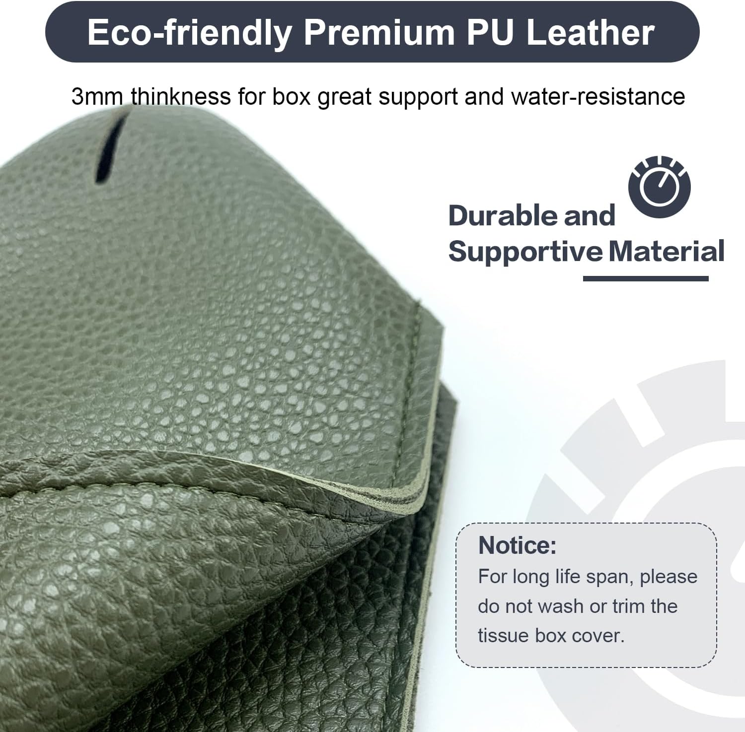 - [PREMIUM PU LEATHER] PENGLONG tissue box cover made with high quality PU leather material, 3mm thikness, which can provide better support for the tissue box. For better pulling out, we adapt the softer material and larger opening so that you can easy to pull out your tissues, no paper jamming.