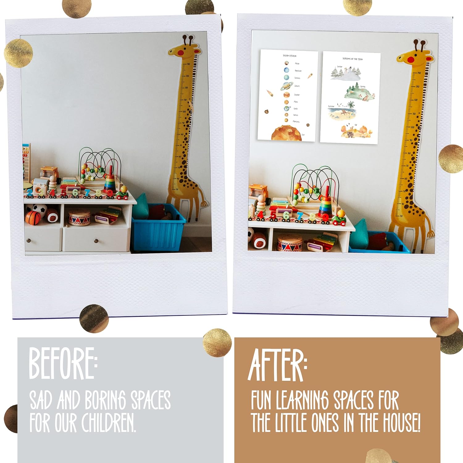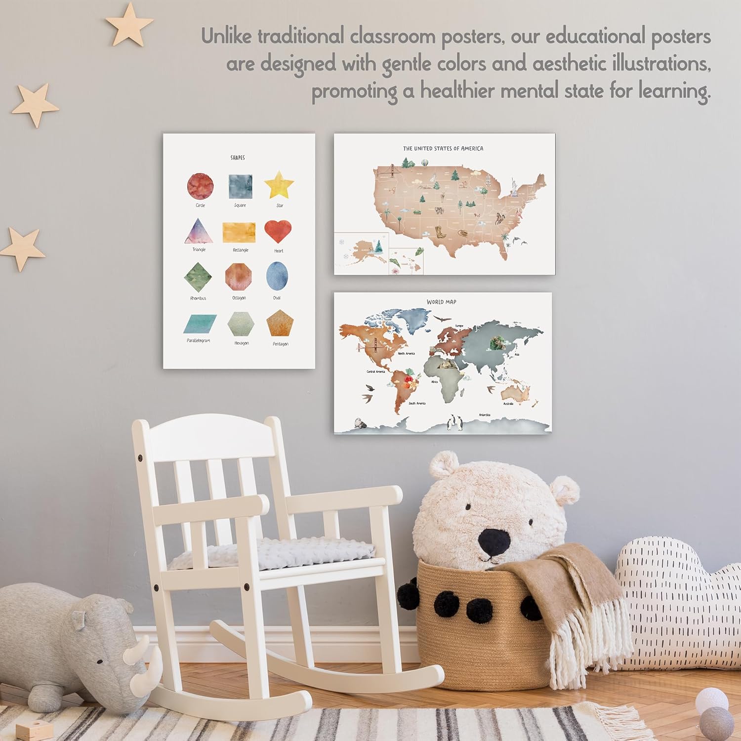 - Open the door of curiosity. Let your children discover and learn without overstimulating them. Unlike the classic "classroom posters," our posters are designed with gentle colors and aesthetic illustrations, promoting a healthier mental state for learning.
