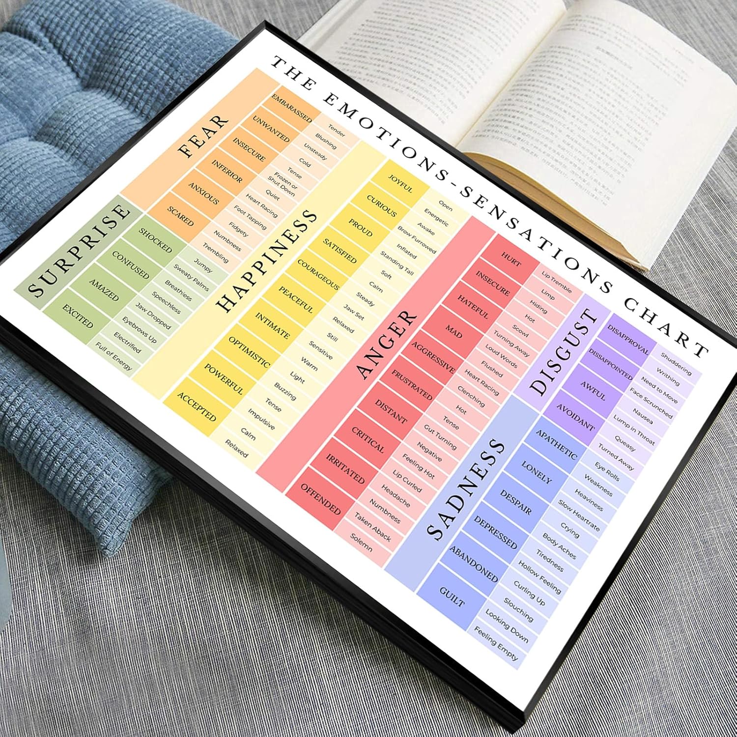 - 【Emotions Chart For Kids Posters Size】 16x24inch(40cm x 60cm), This kids learning posters decorative painting has a black metal frame,There's a wooden frame embedded in it. Just a simple operation can display him in your favorite living space. Impress children, your family, and even your guests.
