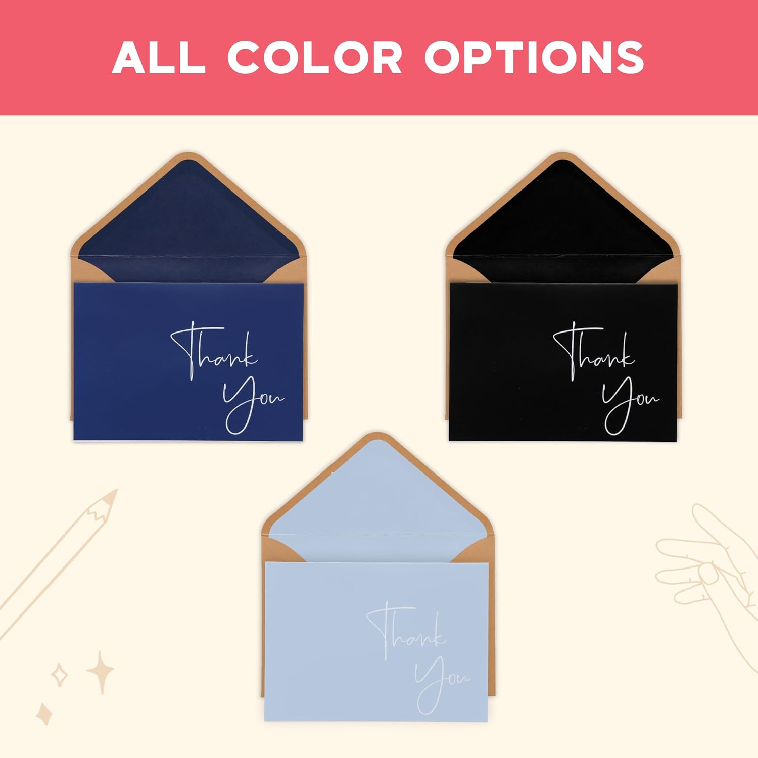 VNS Creations 50 Pack Thank You Cards With Envelopes, Stickers, 3.5x5 Inch Blank Thank You Notes - Bulk Box Set Notes for Graduation, Wedding, Small Business, Baby & Bridal Shower Card - Light Blue