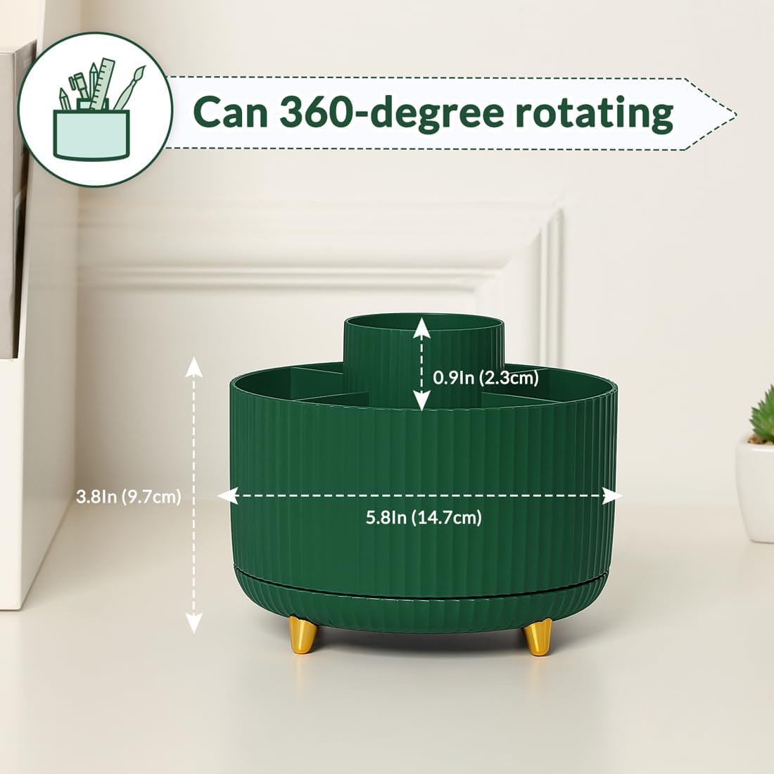 - Rotating Pen Holder: This pencil and pen holder combo offers a 360 degrees rotation feature, ensuring easy access to your writing tools, and making it even more convenient to find what you need