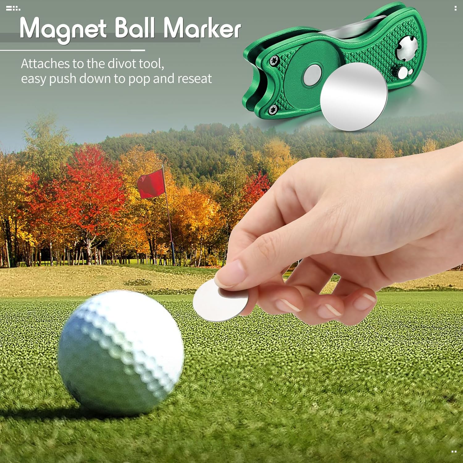 Skylety 4 Pcs Golf Divot Repair Tool Metal Foldable Golf Divot Tool with Magnetic Pop-up Button Ball Marker Stainless Steel Switchblade for Golfers Prizes
