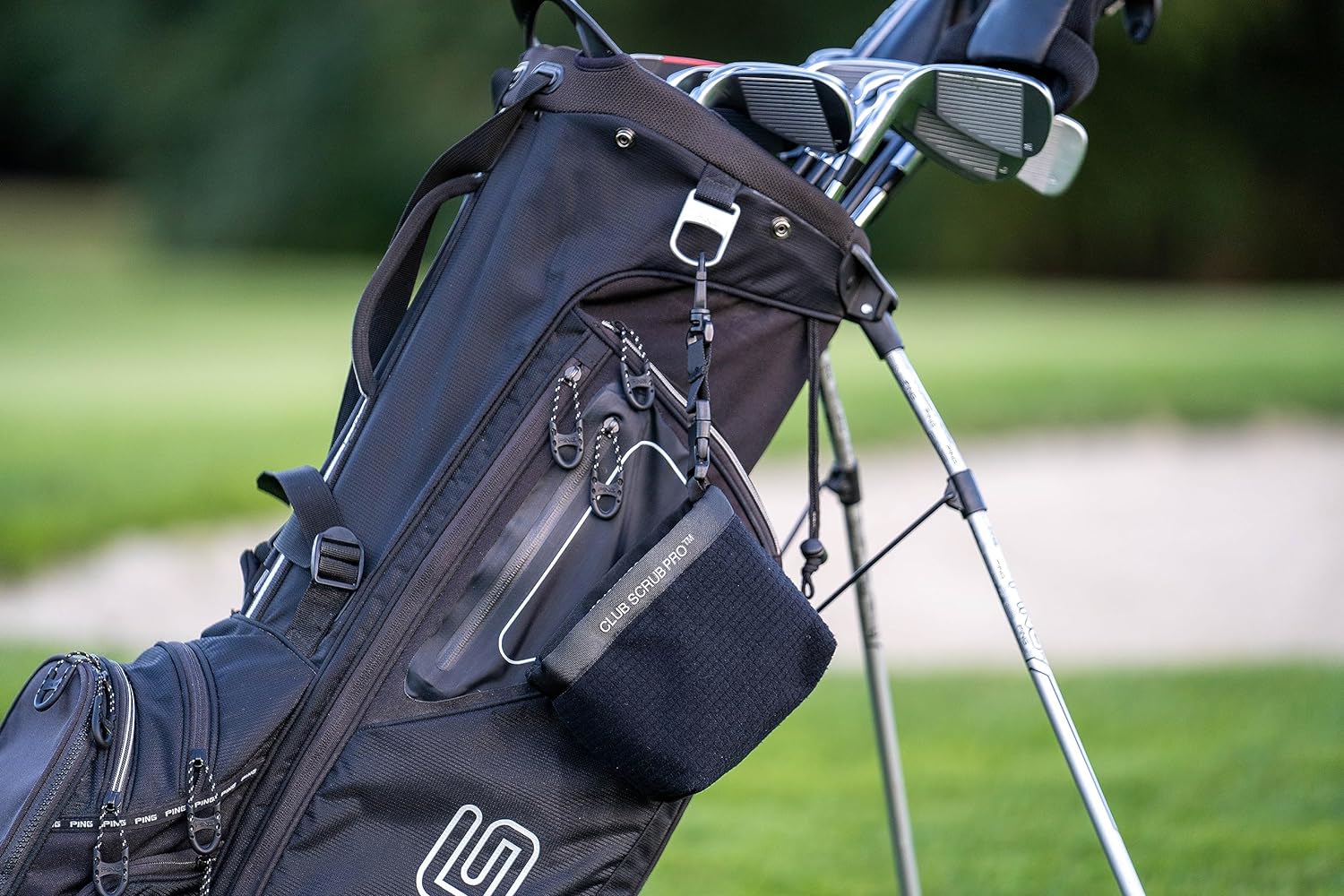 - DETACHABLE CLIP provides easy access to the Club Scrub while on the putting green.