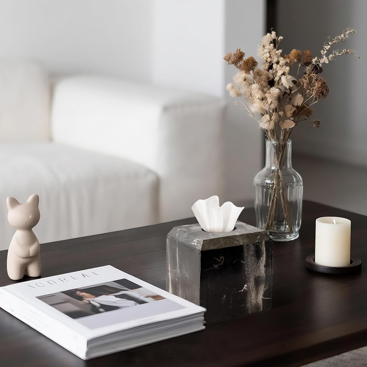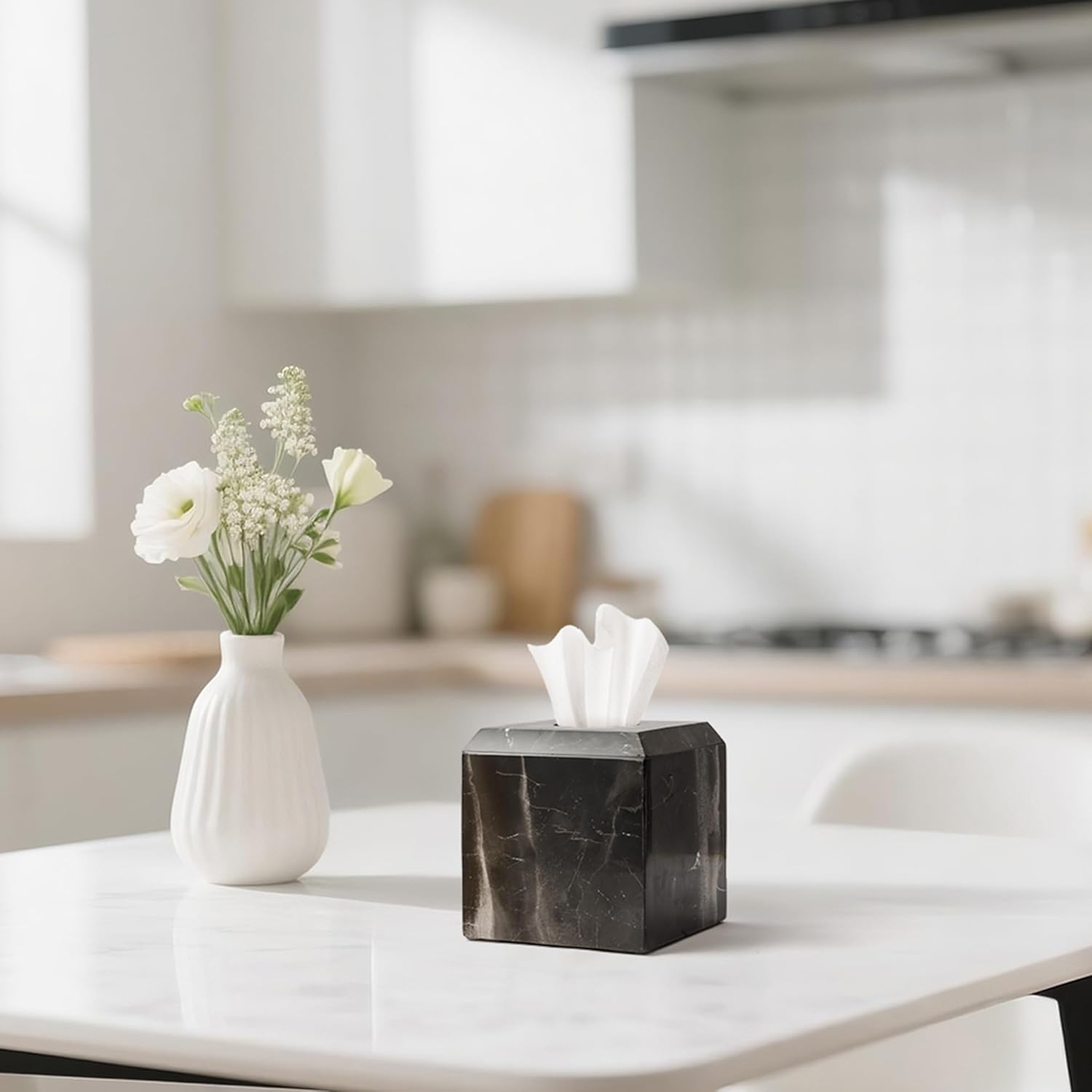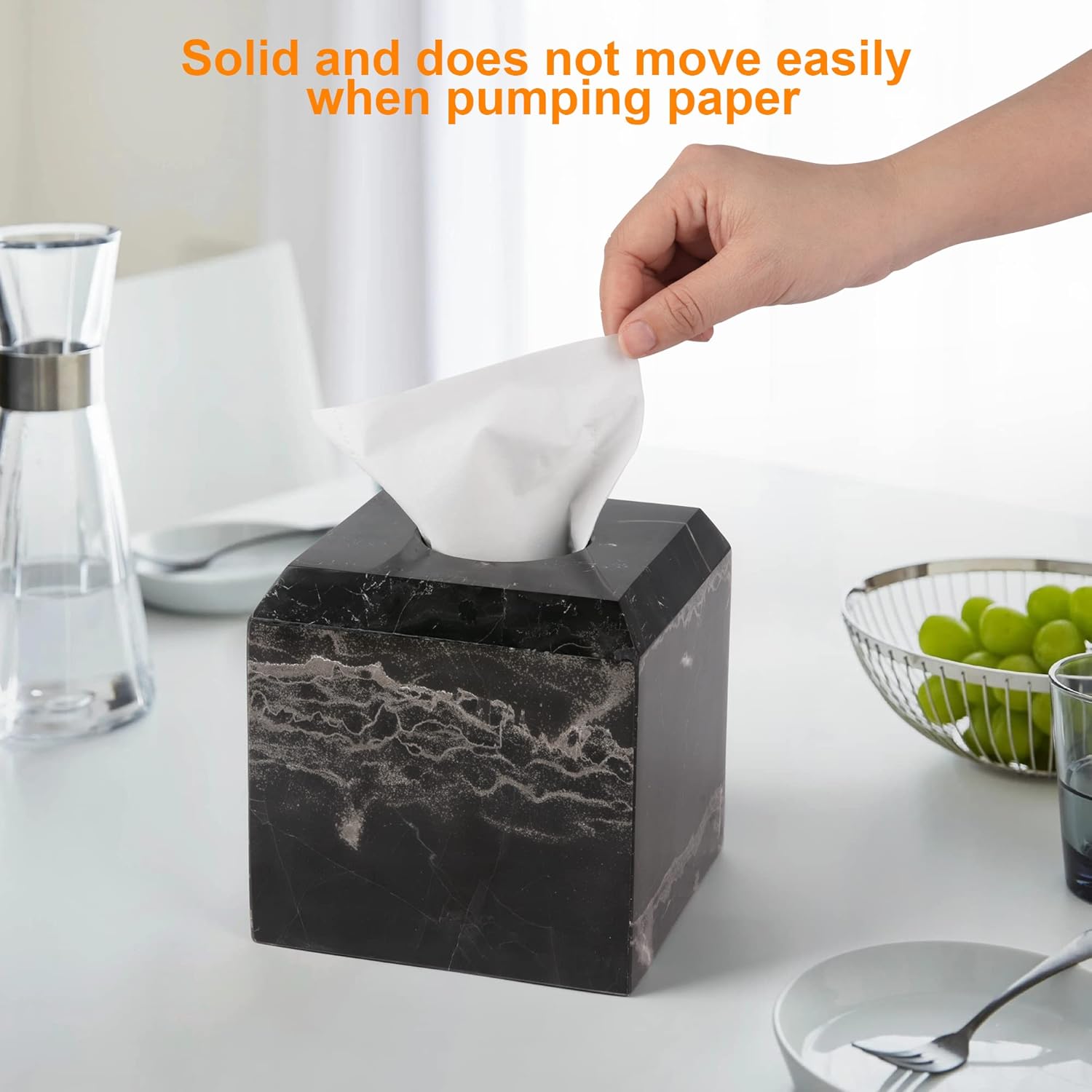 WORHE Tissue Box Cover Italy Natural Marble Heavy Duty Square Facial Toilet Paper Holder for Bathroom Living Room Bedroom Dresser Kitchen Minimalistic Office Home Decor Black (WH013)