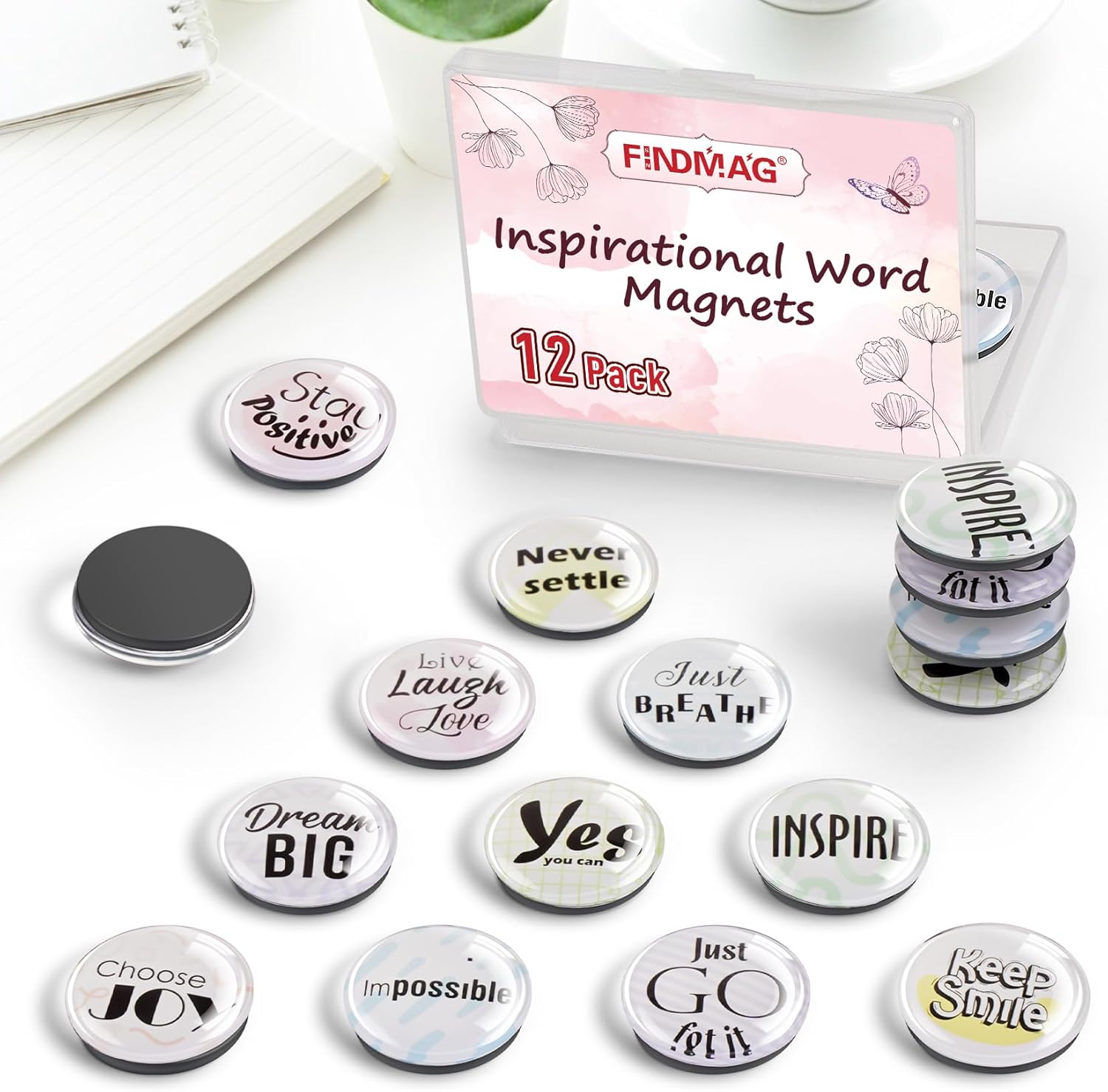 FINDMAG 12 Pack Strong Refrigerator Magnets, Glass Fridge Magnets, Cute Fridge Magnet Sticker, Small Magnets for Whiteboard, Classroom, Kitchen, Office, Home, Cabinet and Photos