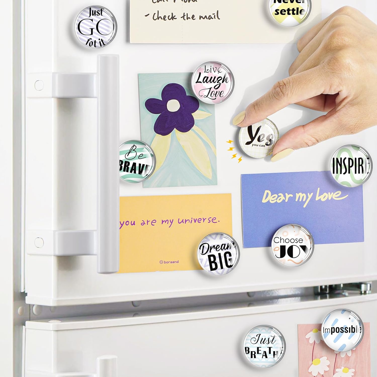 - ✨【Package Contents】This product set includes 12 circular glass fridge magnets measuring 30 x 3.5 mm (1.2 x 0.13 inches). Despite their compact size, these magnets possess strong magnetic force, making them ideal for securing various items to your fridge.
