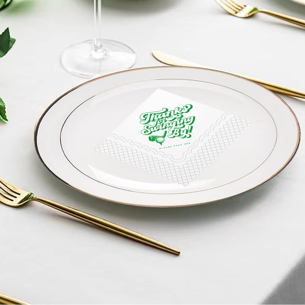 - Unique design: this kind of napkin is printed with "Thanks For Swinging By Please Take One " font on it; this lovely printed napkin is suitable for BIRTHDAY parties