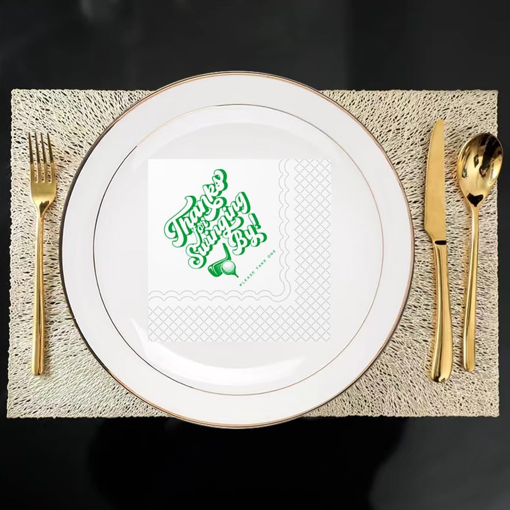 - SharkBliss Golf Cocktail Napkins, 50 Pack Thanks For Swinging By Please Take One Disposable Paper Cocktail Beverage Napkins for Baby Boy Girl 1st Birthday Party Table Decor 2-Ply, 5x5"