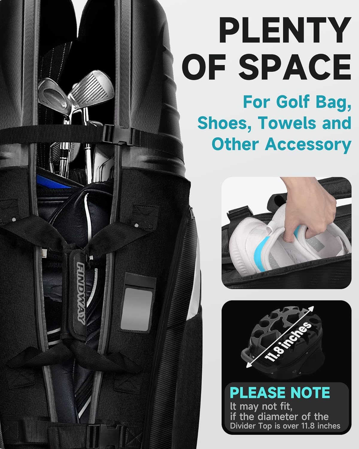 Findway Golf Travel Bags for Airlines with Wheels and ABS Hard Case Top, Protect Your Clubs, Waterproof 1680D Oxford Fabric and Oversize Tank Wheels, Lightweight and Easy to Maneuver