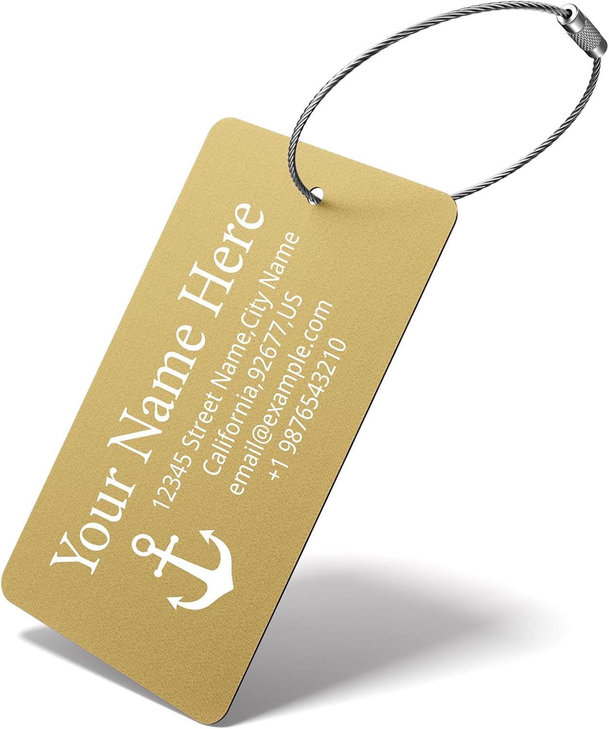 Luggage Tags for Suitcase - Personalized Engraved Metal Tag for Cruise Travel - Custom Name Tags Suitable for Bags and Backpacks(Gold),Horizontal (2x3.5'')