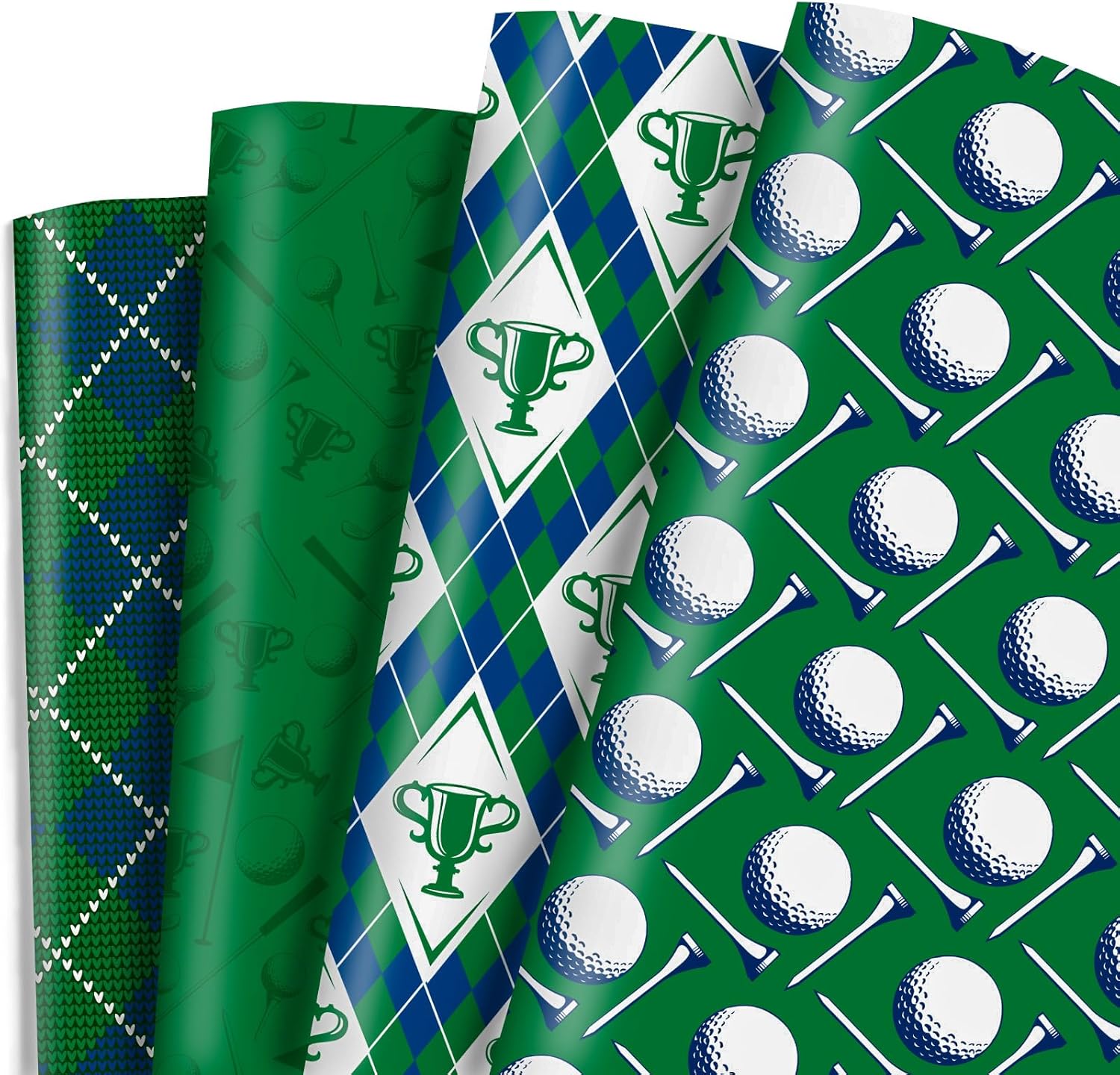 - Elegant Design:Our golf wrapping paper features 4 vibrant patterns,great for men boys birthday. These golf wrapping paper are limited edition and unique to make it easy to add a eye-catching touch to your present.