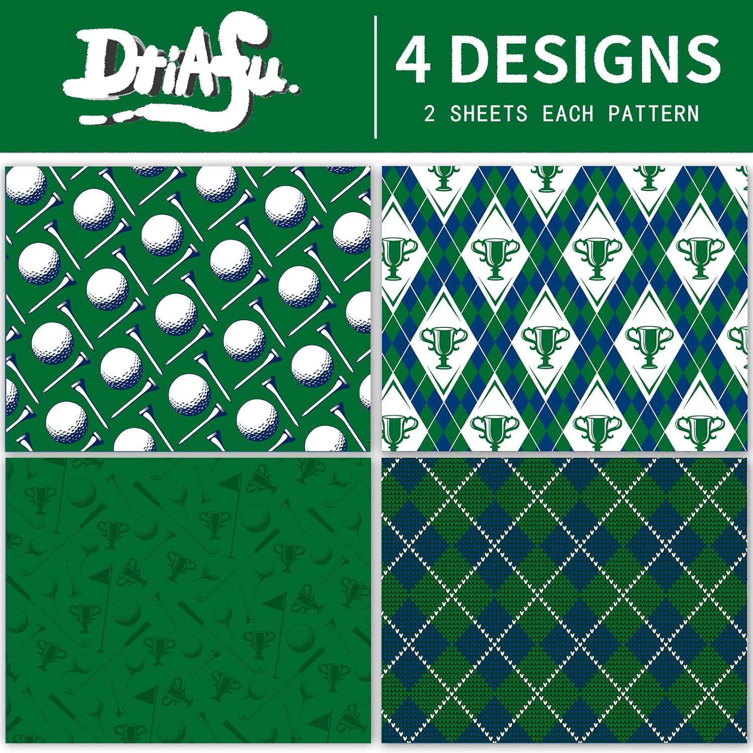 Dtiafu Golf Wrapping Paper for Men Boys Girls - 8 Sheets Green Elegant Gift Wrap with 4 Golf Champions Plaid Patterns for Birthday - Pre Cut& Folded Flat Design(20 X 27 Inch Per Sheet)