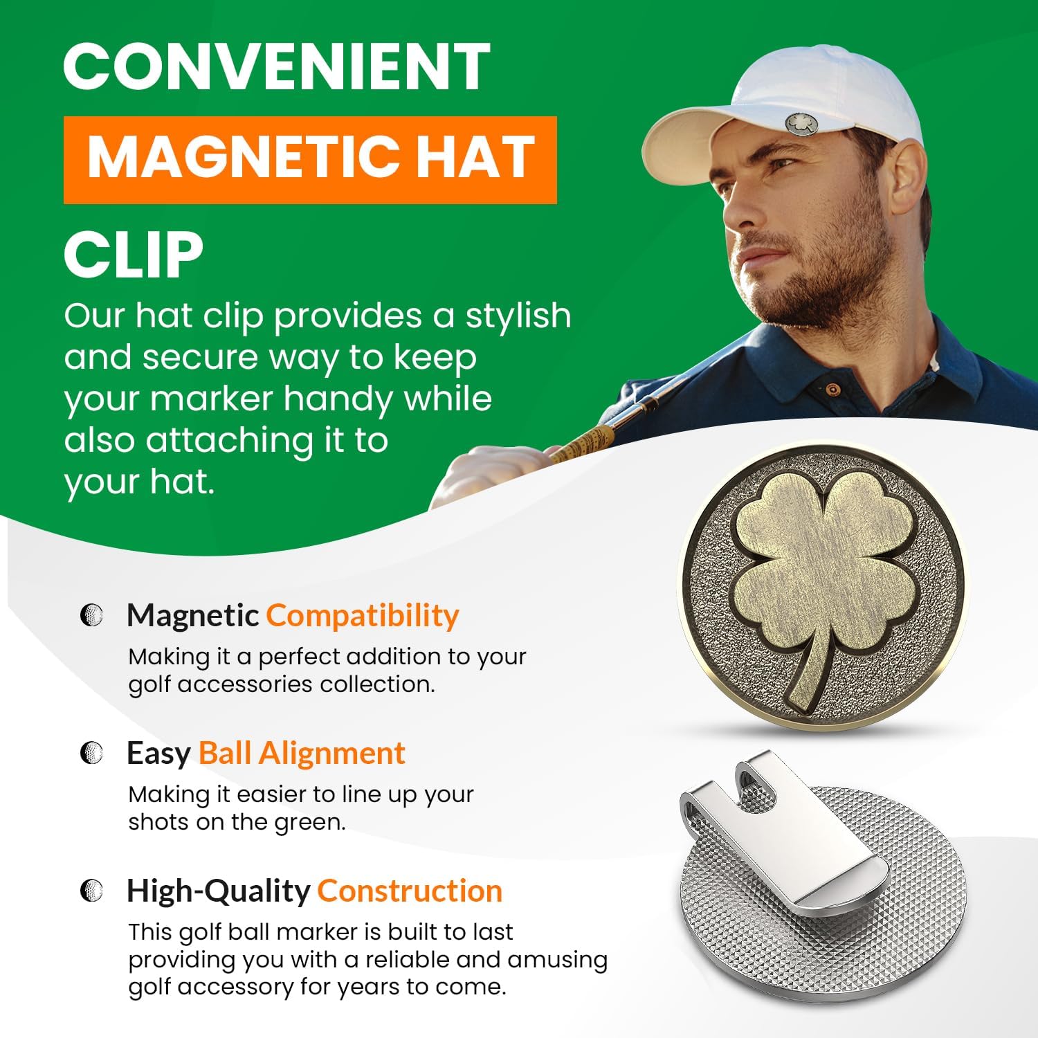 - โญใ๐๐๐ฆ๐ฌ ๐๐๐๐ ๐ง๐ฅ๐๐๐๐๐ก๐ใ: Never lose sight of your golf ball again. The standout 4 leaf clover marker ensures quick identification, allowing you to focus on your game without the hassle of searching for your ball. -Convenient Hat Clip: Our hat clip provides a stylish and secure way to keep your marker handy. Attach it to your hat, visor, or belt, ensuring easy access whenever you need to mark your ball's position