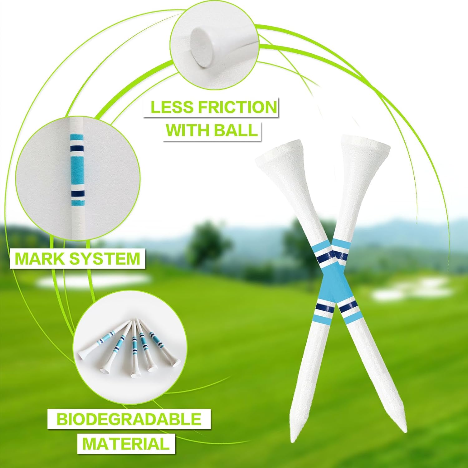 FINGER TEN Golf Tees Wood 3 1/4 2 3/4 Inch Wooden Bamboo 50/120 Count, Durable Biodegradable Colored Bulk Tee 70mm 83mm