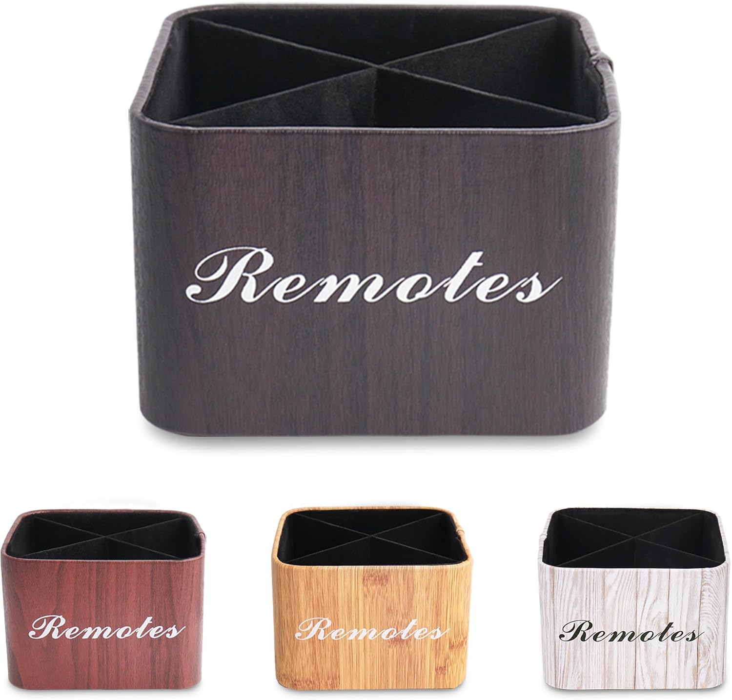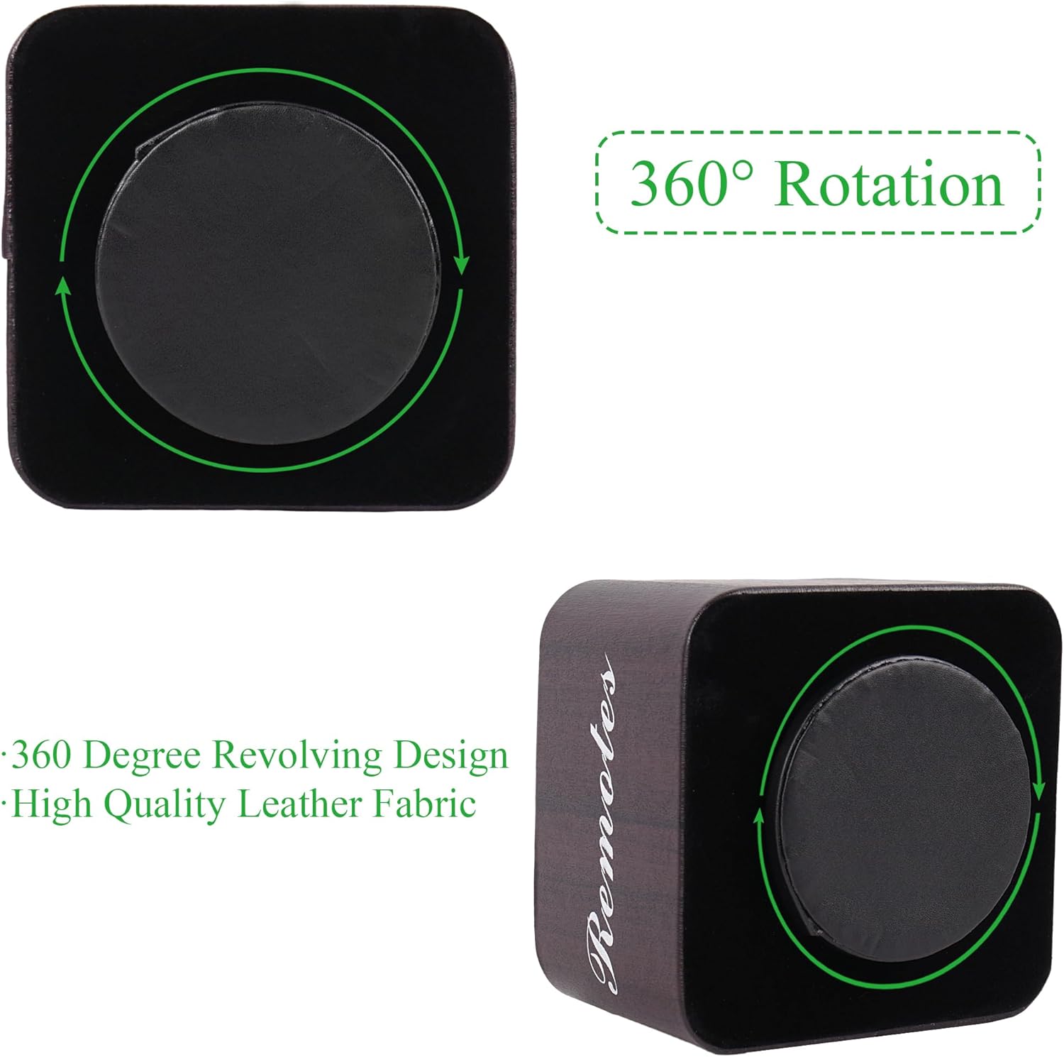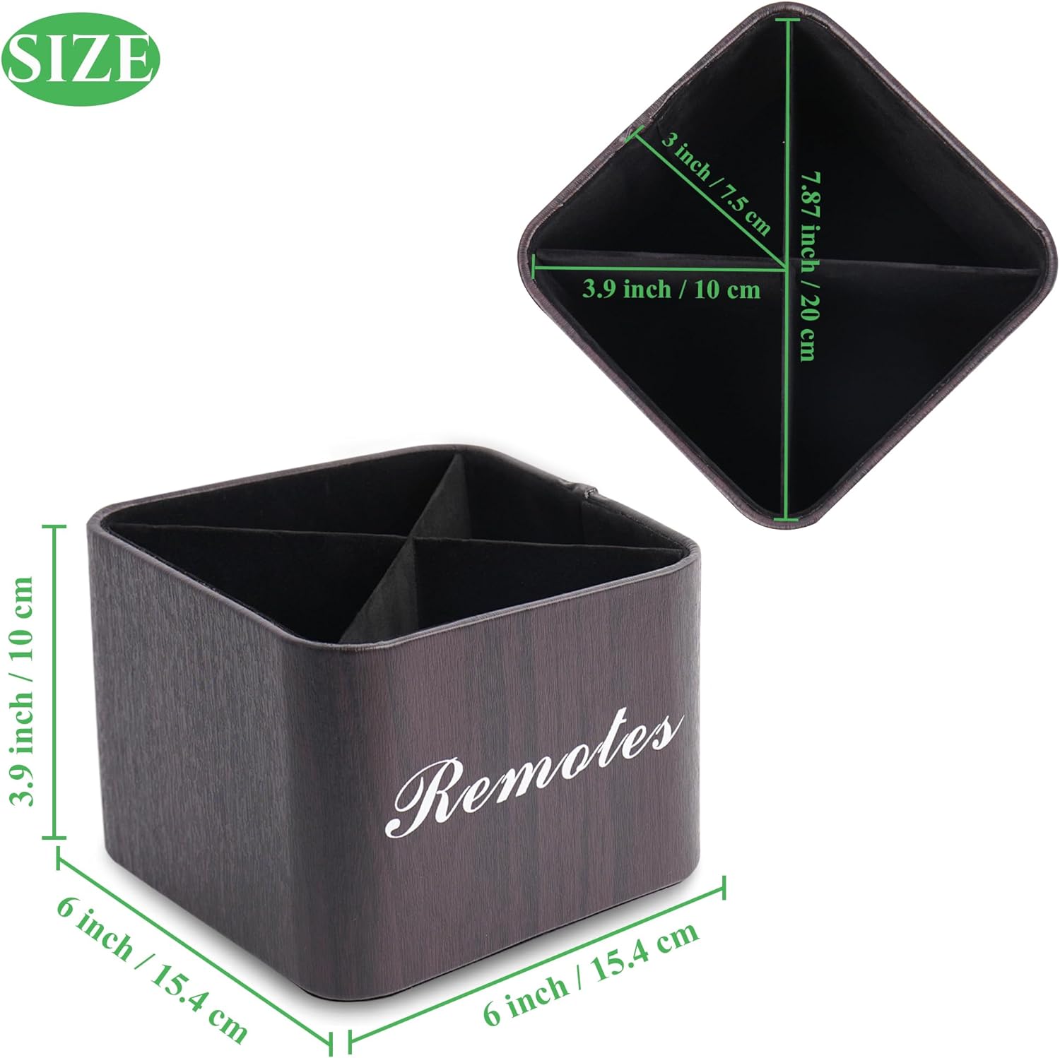 Hennaja Square Leather Art Supply Organizer,Remote Control Holder with Removable Dividers,360°Rotatable Pencil Holders,4 Compartments Organizer for Office Supplies Storage Box(1-Dark Brown)