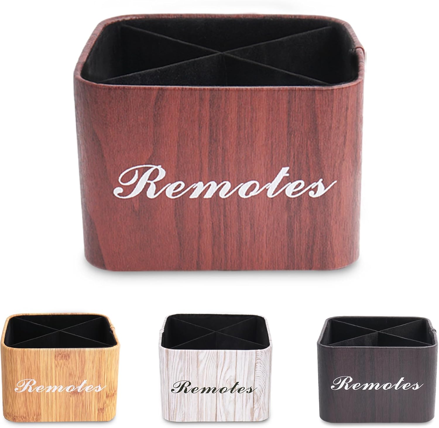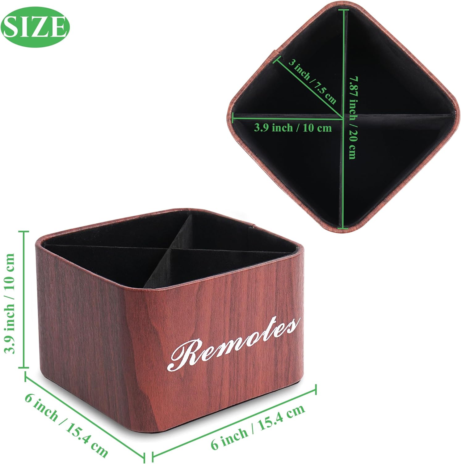 Hennaja Square Leather Art Supply Organizer,Remote Control Holder with Removable Dividers,360°Rotatable Pencil Holders,4 Compartments Organizer for Office Supplies Storage Box(1-Light Brown)