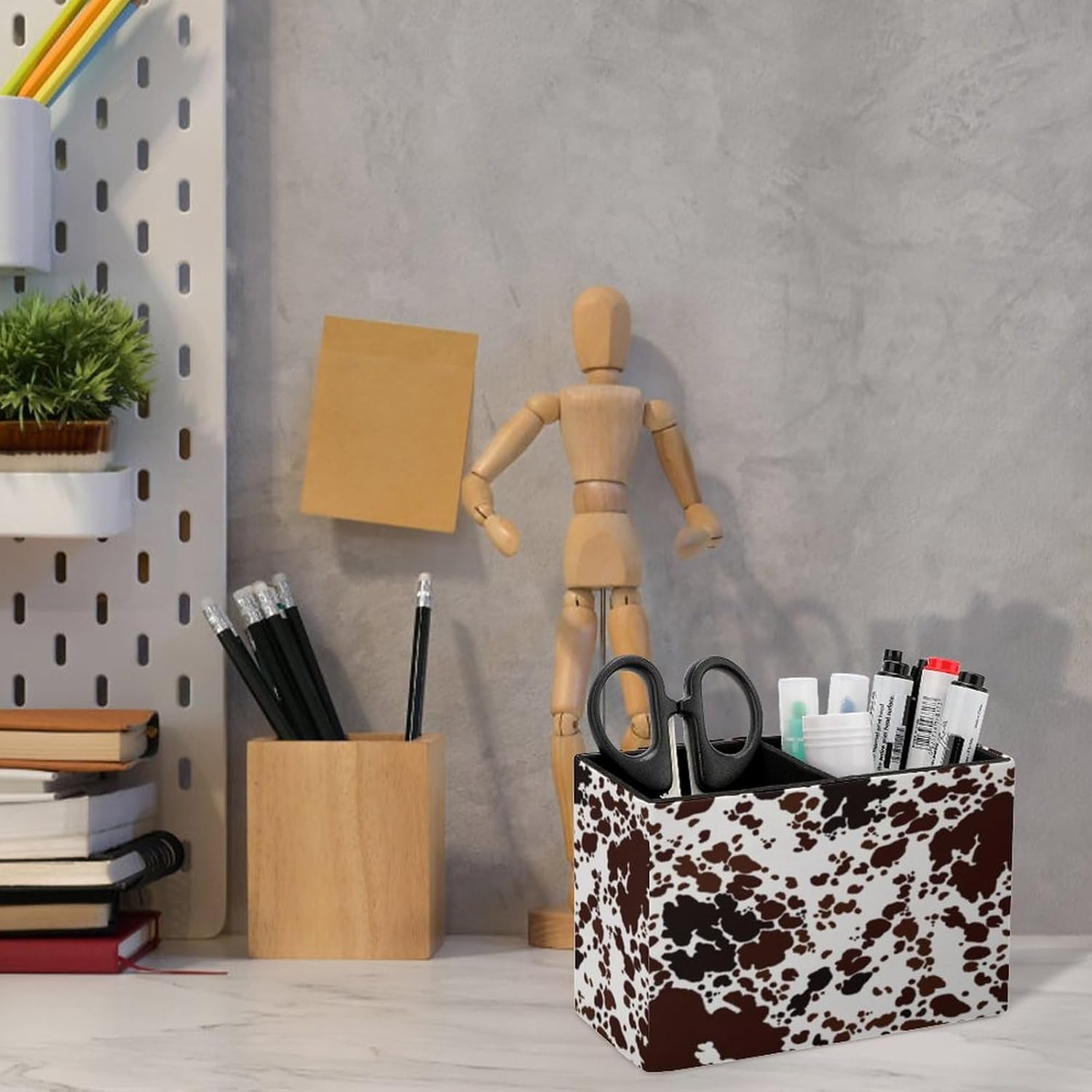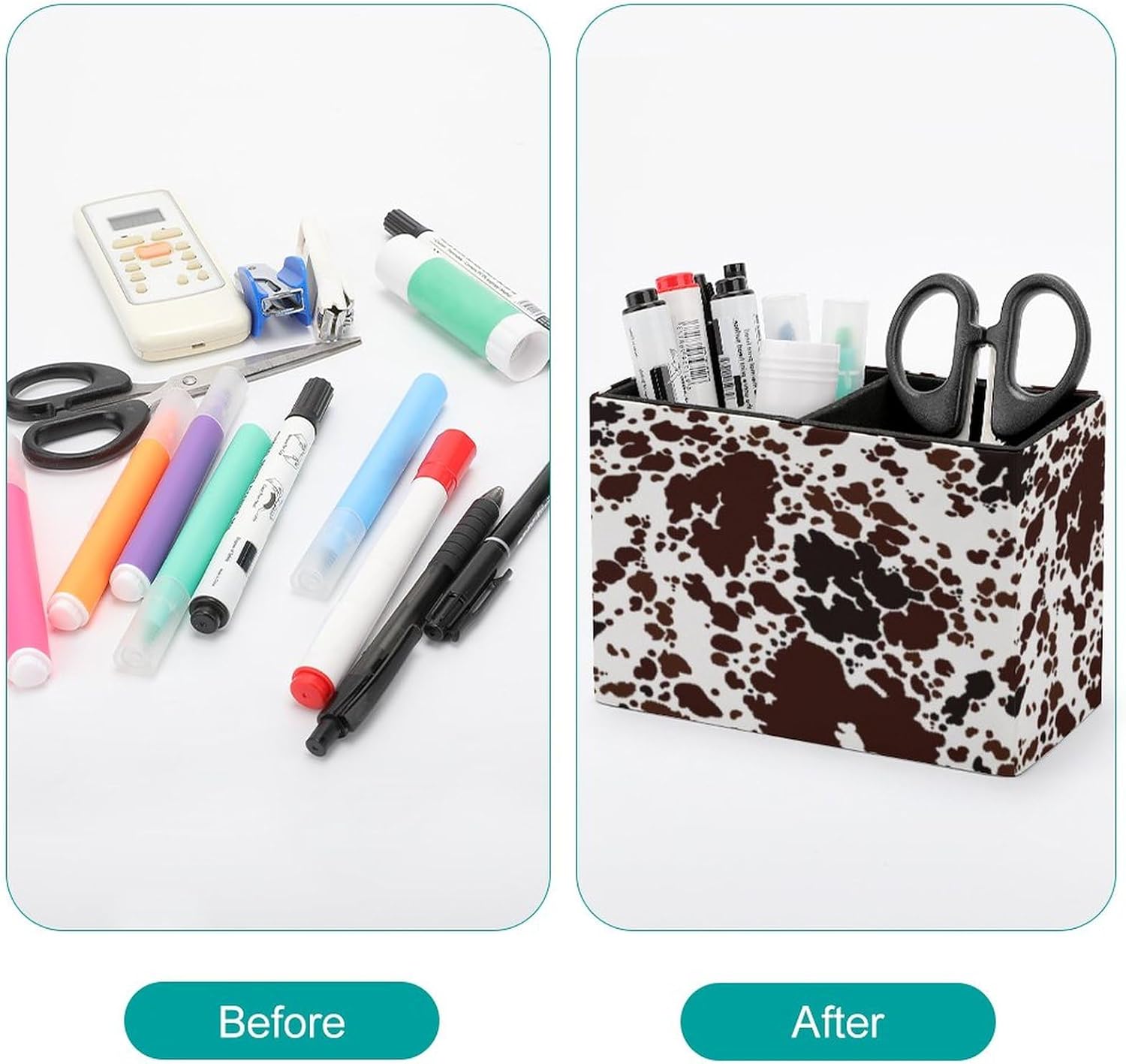 Pen Holder, Pencil Holder for Desk Organizer, Cow Print Brown Spots PU Leather Pencil Cups Desktop Stationery Storage Makeup Brush Holder Pen Organizer for Office Home