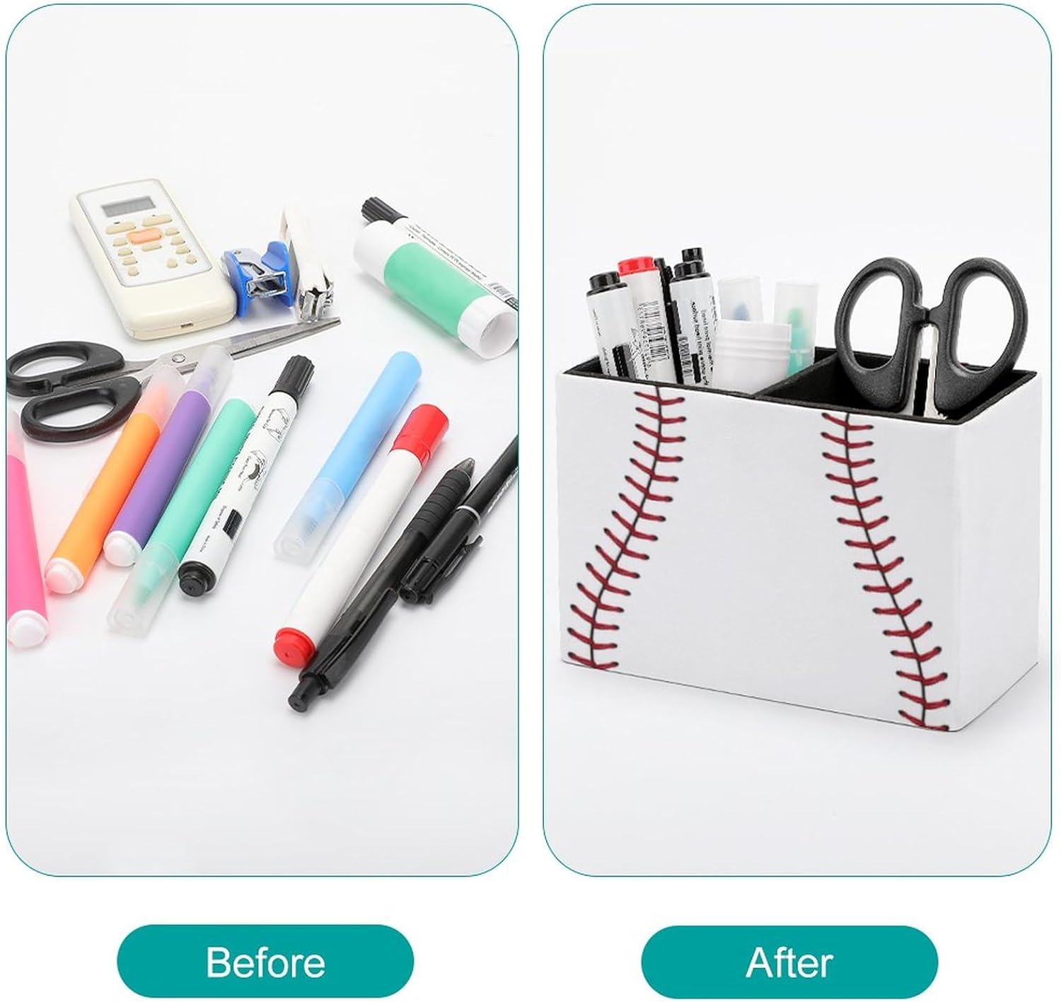 Pen Holder, Pencil Holder for Desk Organizer, Baseball Lace Sport Ball PU Leather Pencil Cups Desktop Stationery Storage Makeup Brush Holder Pen Organizer for Office Home