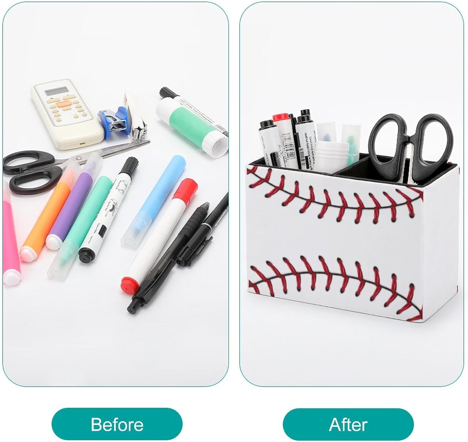 Pen Holder, Pencil Holder for Desk Organizer, Ball Baseball Stitches Sport PU Leather Pencil Cups Desktop Stationery Storage Makeup Brush Holder Pen Organizer for Office Home