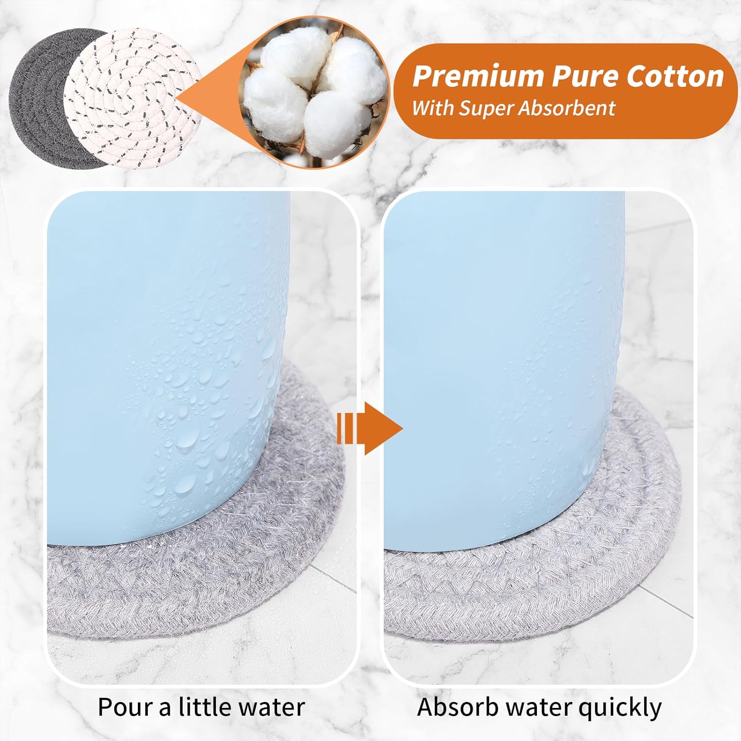 - No More Fear of Spills: Mckanti drink coasters are handcrafted from 100% cotton and linen. They are more absorbent than other silicone or ceramic coasters. This coaster instantly absorbs spilled moisture and then miraculously evaporates , keep it dry and clean at all times. All you need to do is place your drink on the Mckanti drink coaster and enjoy your drink time.