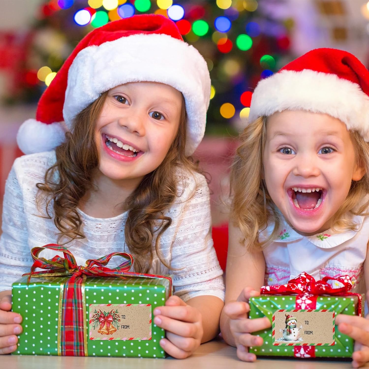 Outus 500 Pieces Christmas Tags Self Adhesive Gift Tags for Xmas Presents Christmas Name Labels Stickers for Wrapping Paper Festival Birthday Holiday Decor(Retro Style,2.76 x 1.57 Inch)