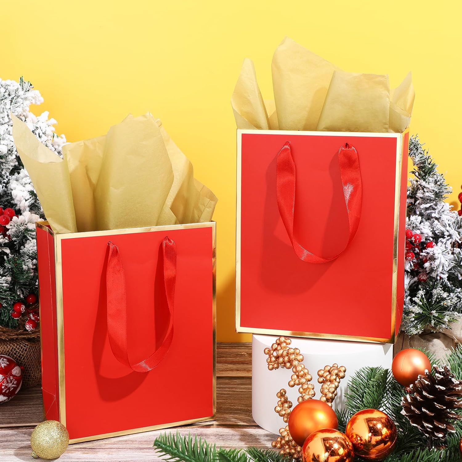 - Exquisite Design: gift bag features the appearance of red and hot stamping golden edge design, carrying handle with red satin ribbon, leaving a deep elegance impression; There is no text on the gift bag, you can write your blessing on the bag to express your feelings
