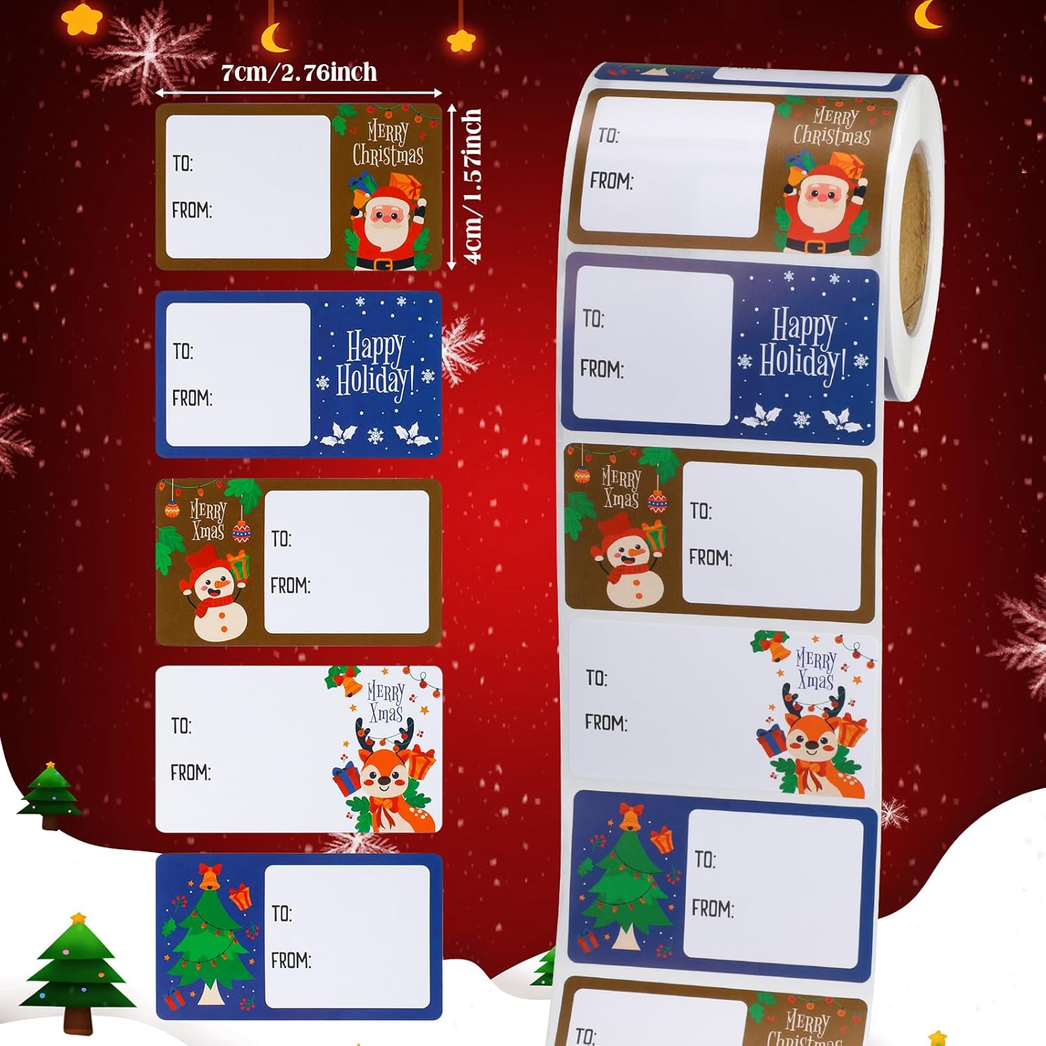 Outus 500 Pieces Christmas Tags Self Adhesive Gift Tags for Xmas Presents Christmas Name Labels Stickers for Wrapping Paper Festival Birthday Holiday Decor(Modern Style,2.76 x 1.57 Inch)