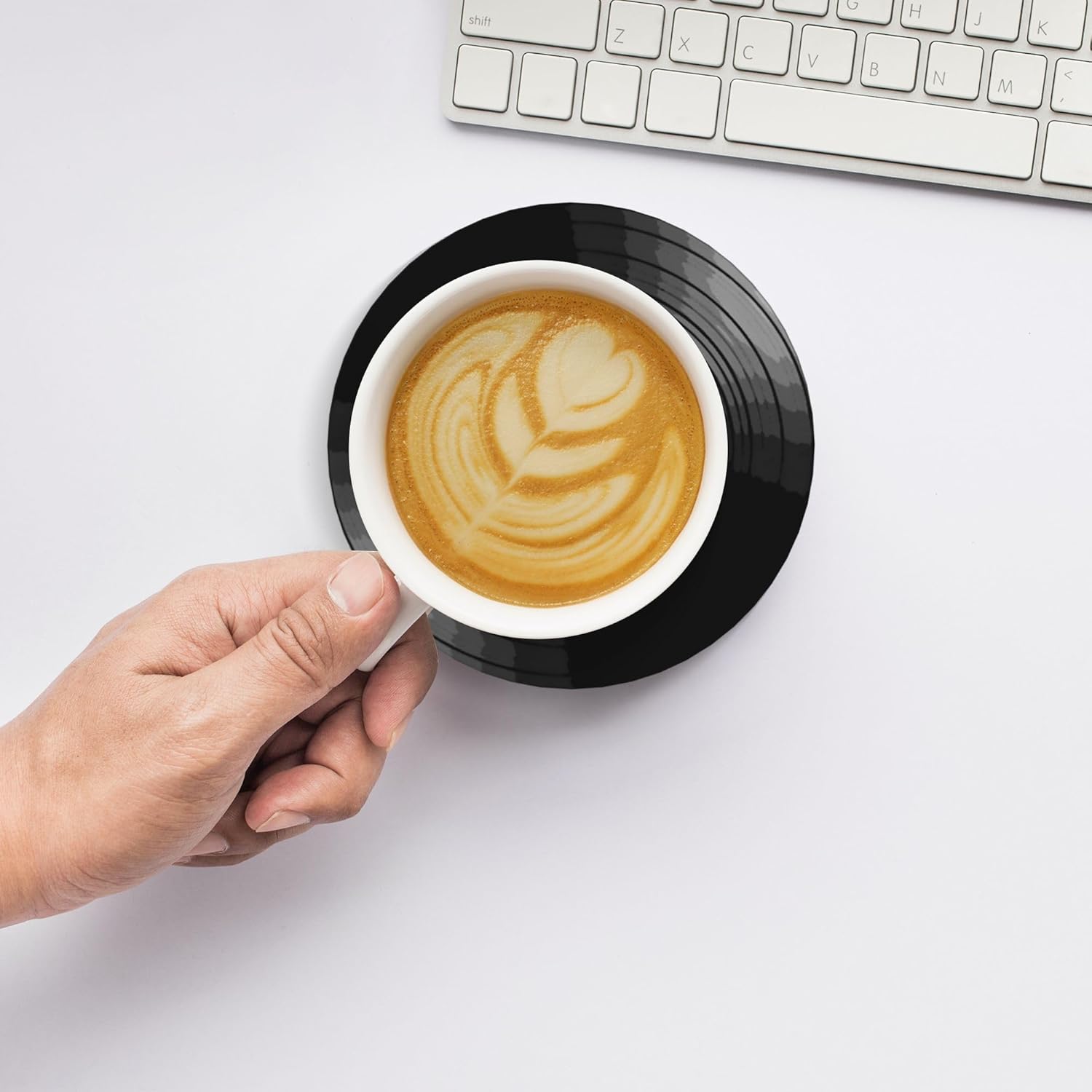 Vinyl Record Coasters for Drinks Set of 4, Absorbent Ceramic Drink Coasters for Coffee Table Wooden Table Cup Bar, 4 Inches