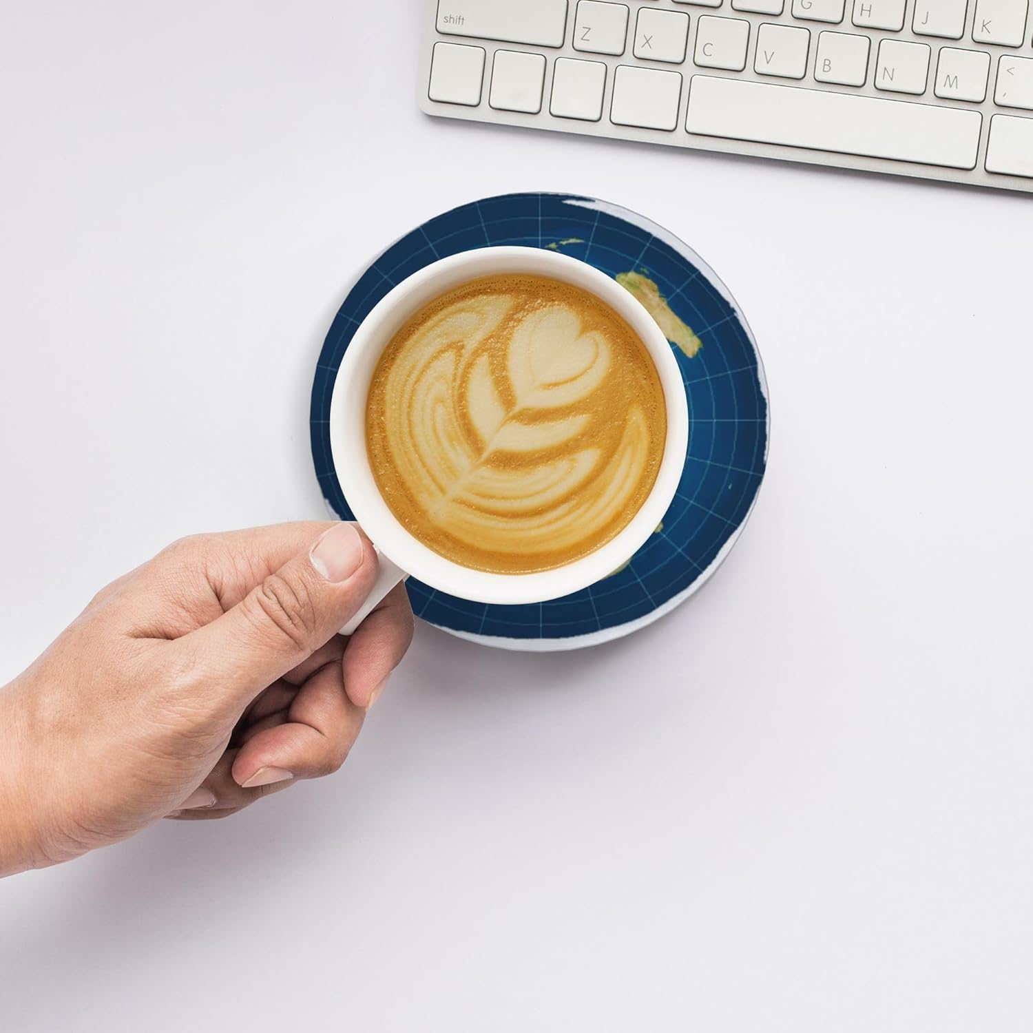 Flat Earth Map Model Coasters for Drinks Set of 4, Absorbent Ceramic Drink Coasters for Coffee Table Wooden Table Cup Bar, 4 Inches